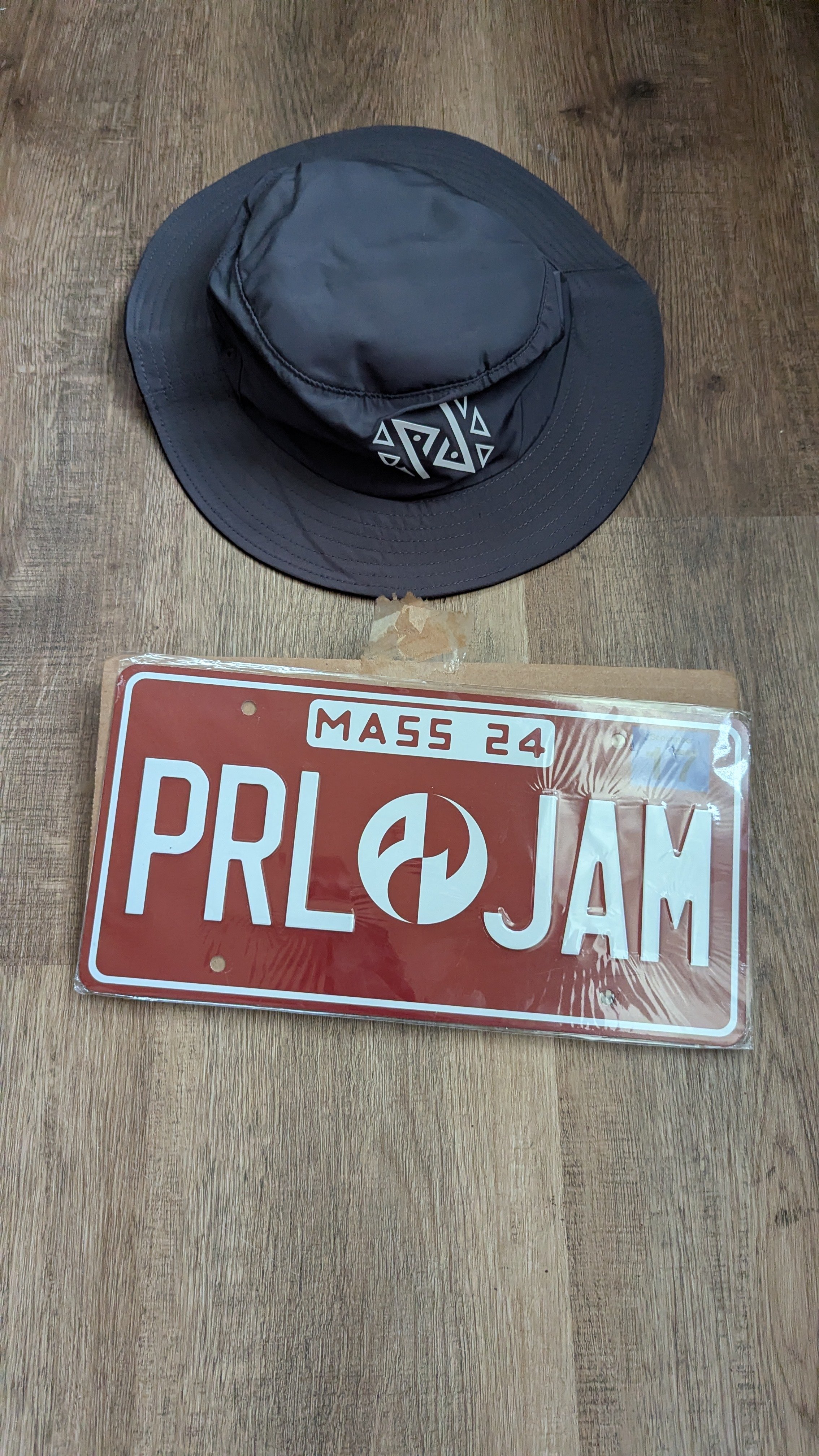 Men’s small bag. What a fantastic surprise! The jacket is very cool and the shirts are great too. I would like to trade the MT plate for a WA plate since I already have MT. DM me if interested. Thank you again, SLH, crew, and of course, PJ!