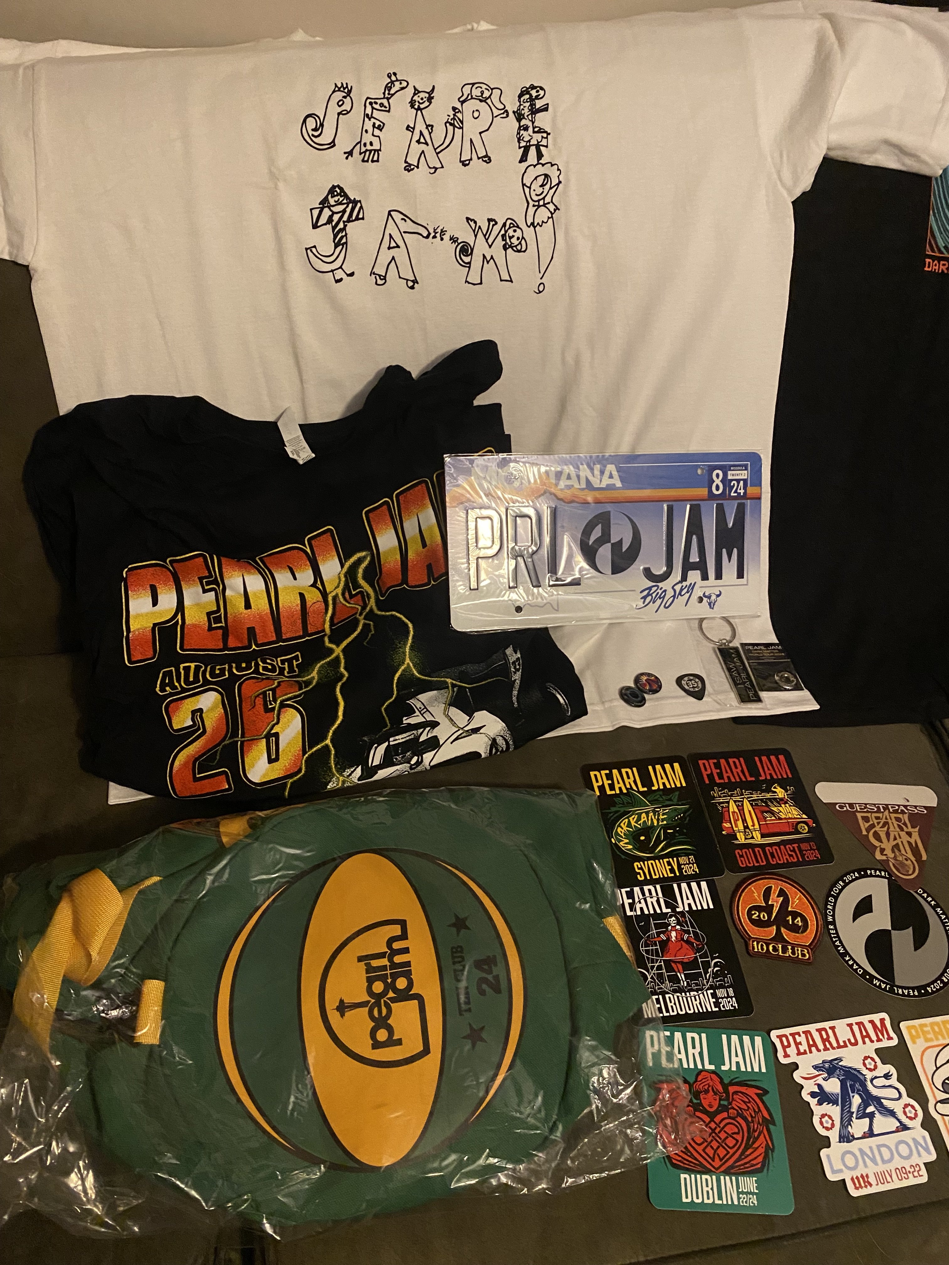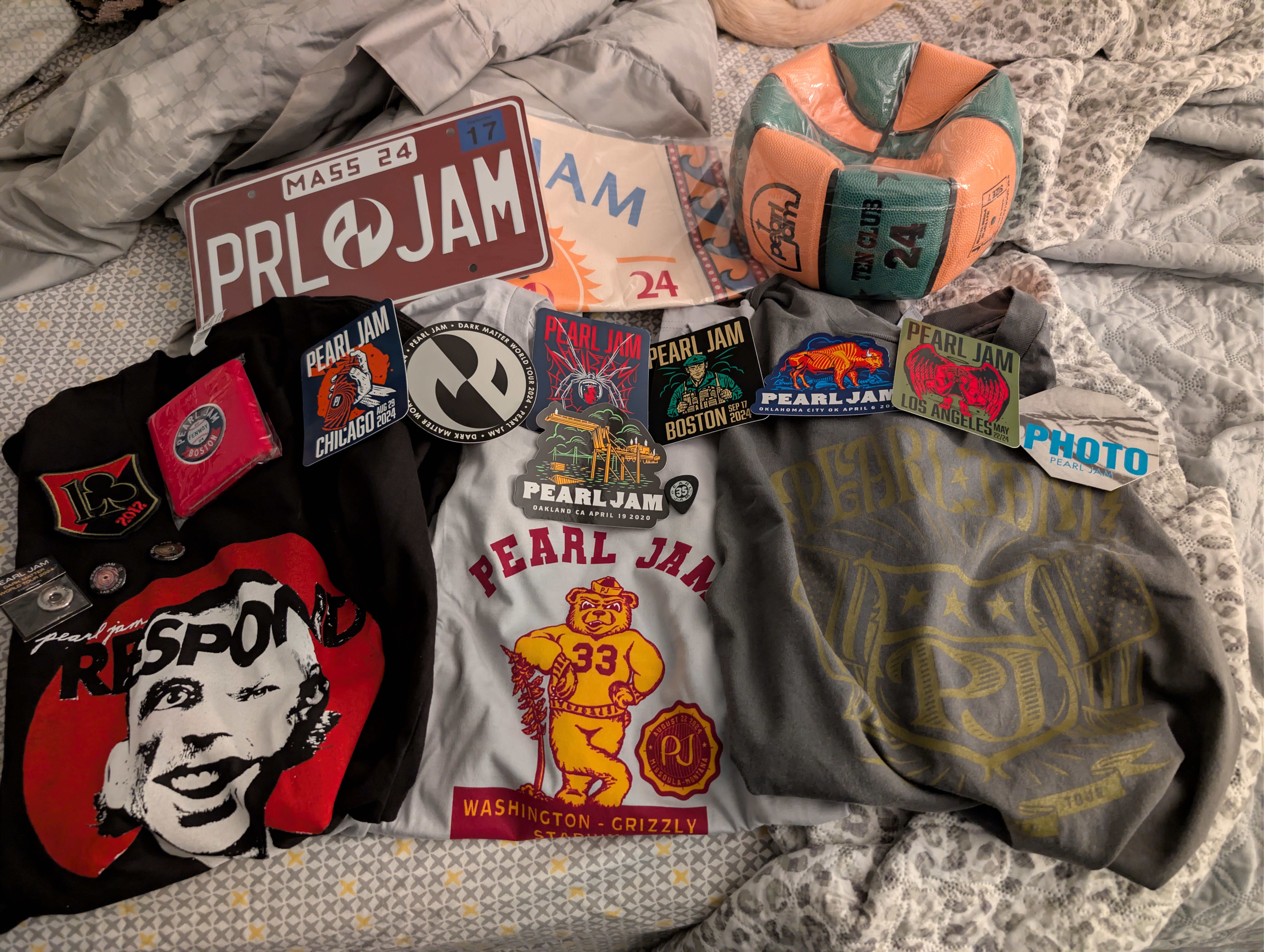 Love the long sleeve Indy shirt. Glad I got that. That’s a sweet white PJ shirt, never seen it before.sheenTN said:My XXL bag and pretty happy. Love the white PJ20 shirt I’ve not seen before. Token is Napa and would trade for a Nashville. Not pictured is the Fenway flag and there is the DM tour shirt cut off on the right.