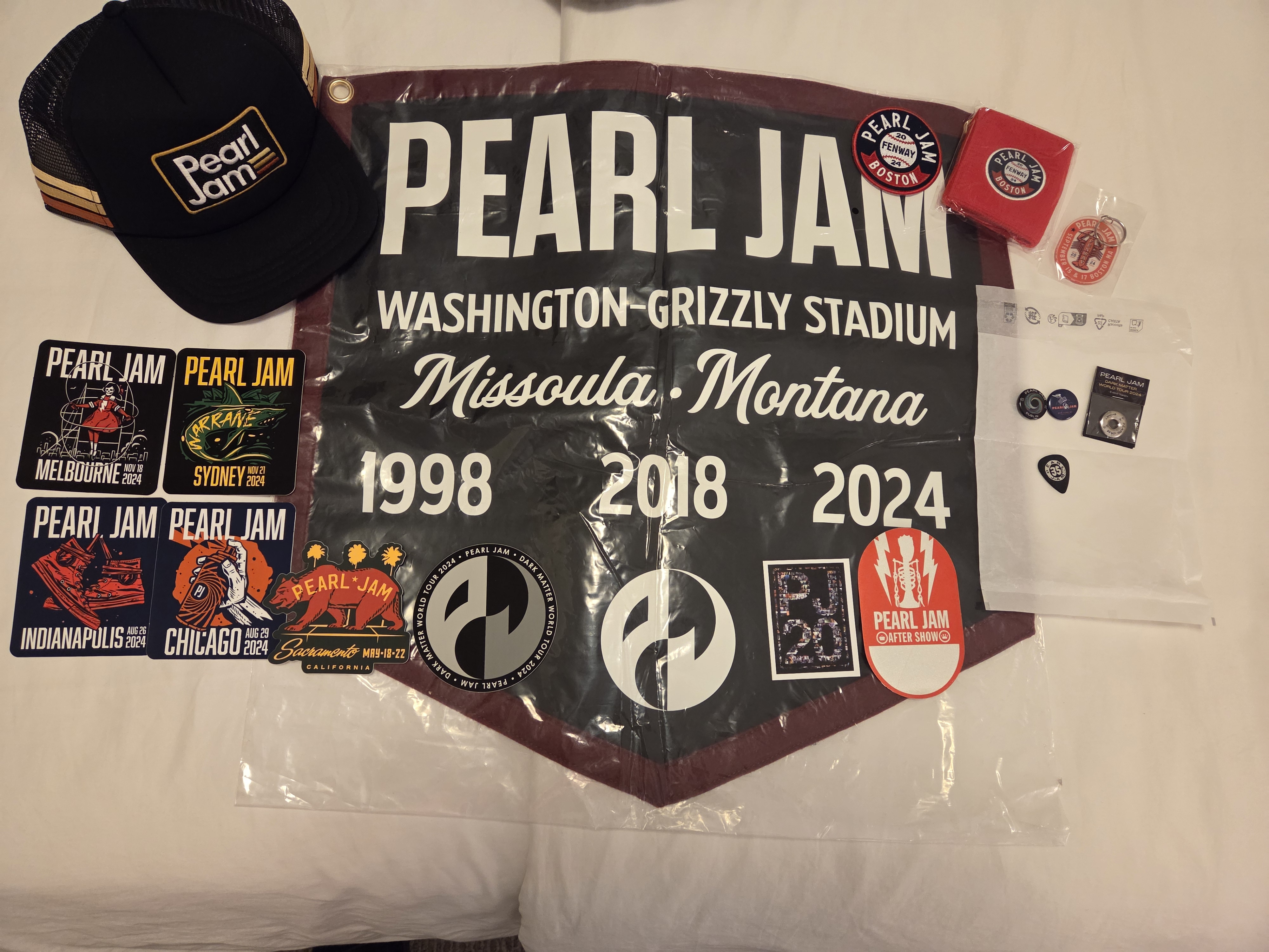 2X Haul. First mystery box. Way I see it, could have been worse, could have been better, just thankful that the band and the 10c do stuff like this. If anyone is interested in anything just shoot me a PM. Congrats to everyone else that got one. "Fuck the talkin' let's start rockin" - Eddie Vedder 9-5-00 Pittsburgh