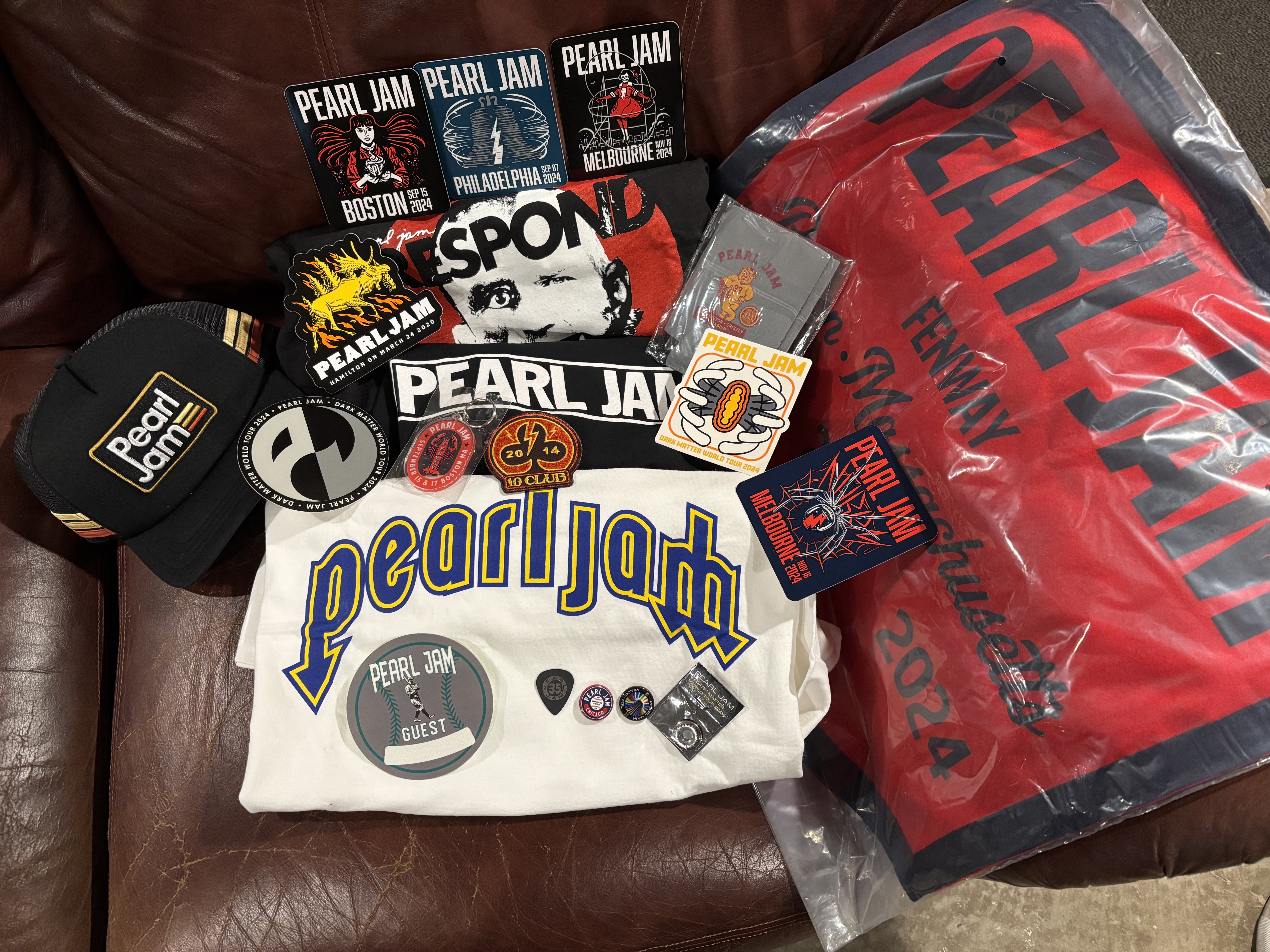 In this years bag, I got one of those Fenway banners shaped like home plate and a Massachusetts 2024 license plate. (I also got a Philly 98 sticker which... anything 90s is a big win and I also got a black rearviewmirror shirt with the album art on the front. I had no idea this shirt even existed!) I also got one of the retro hats from earlier this year and one of the member shirts from last year...guess who started this thread?