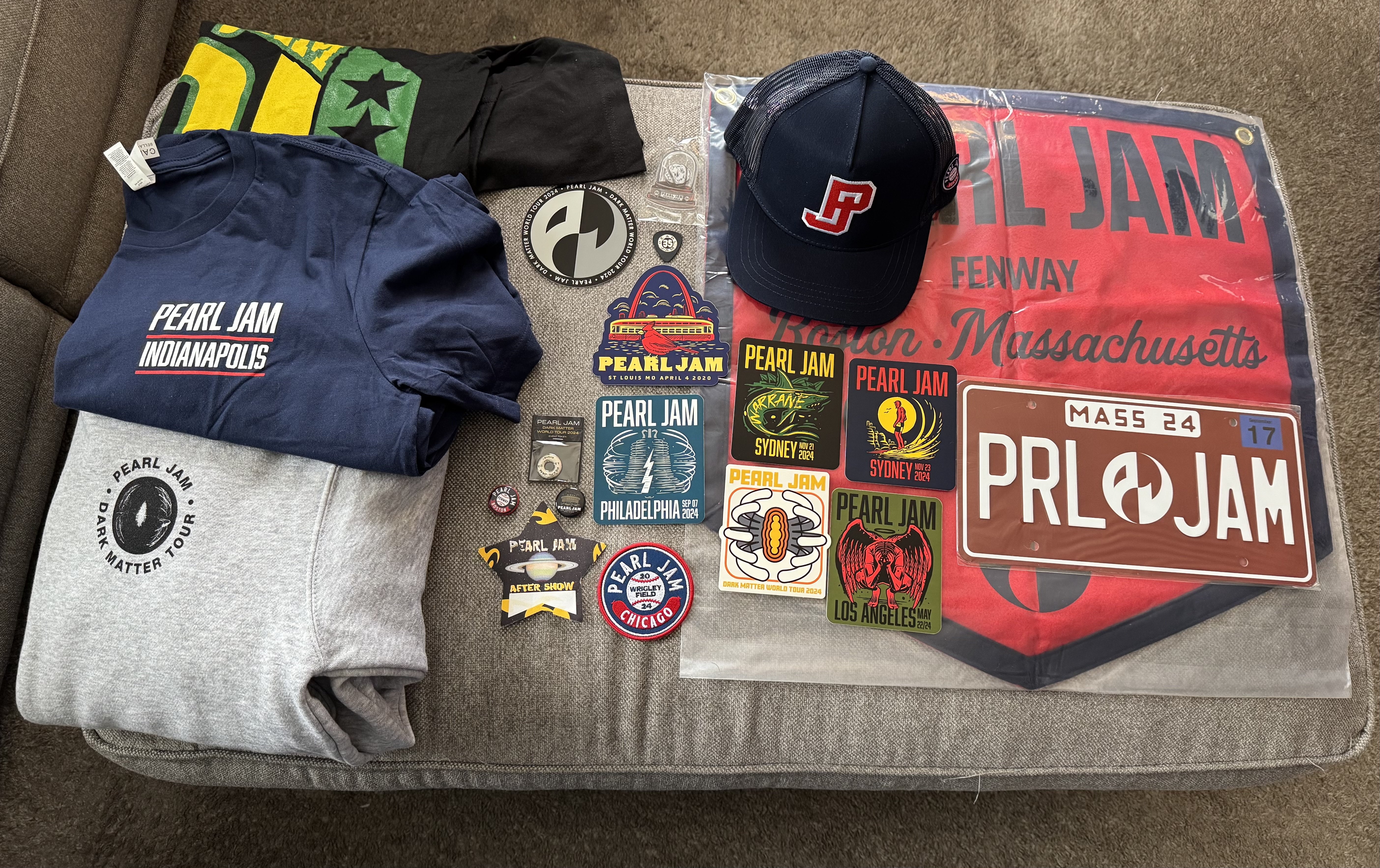 2) All that Boston stuff I got (2016 jersey, banner, 2024 license plate) and I forgot to mention I got a 2018 N2 setlist shirt.