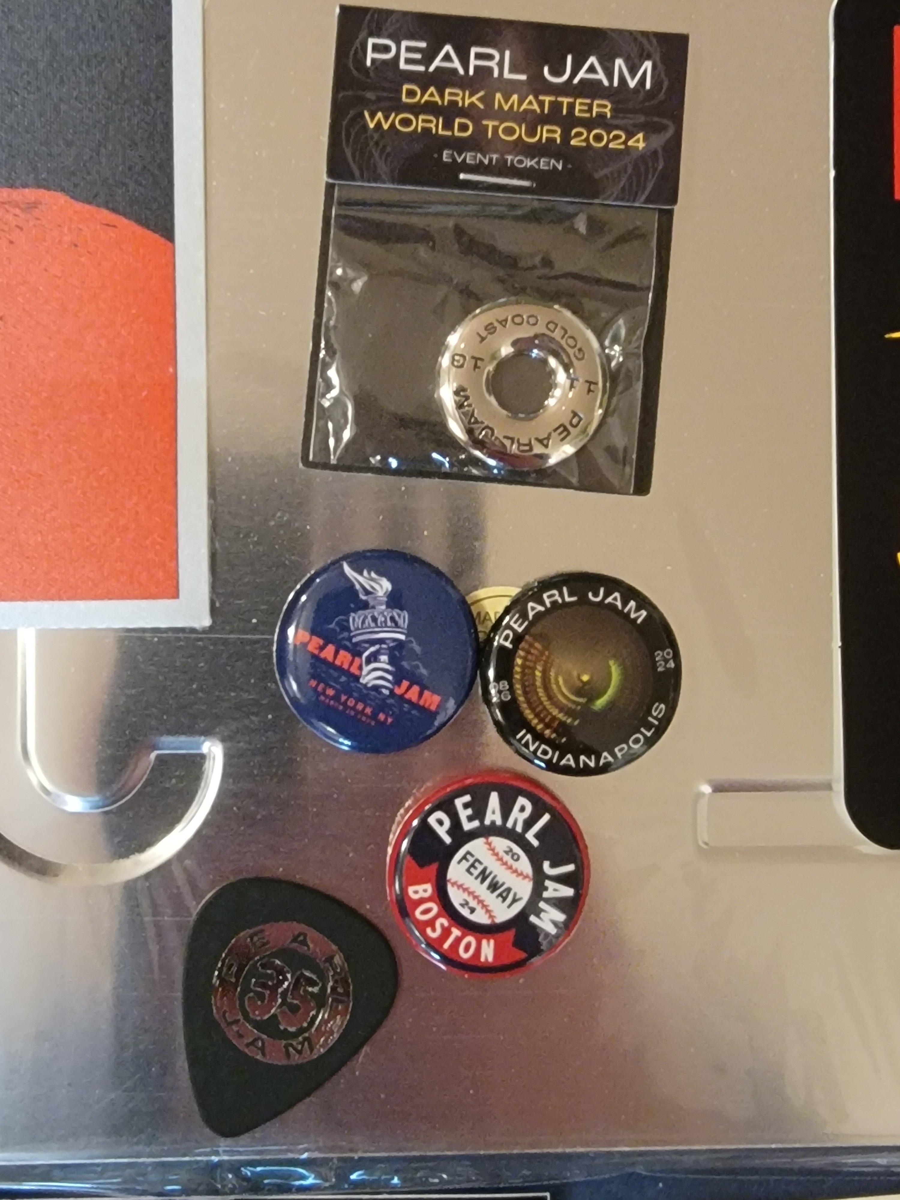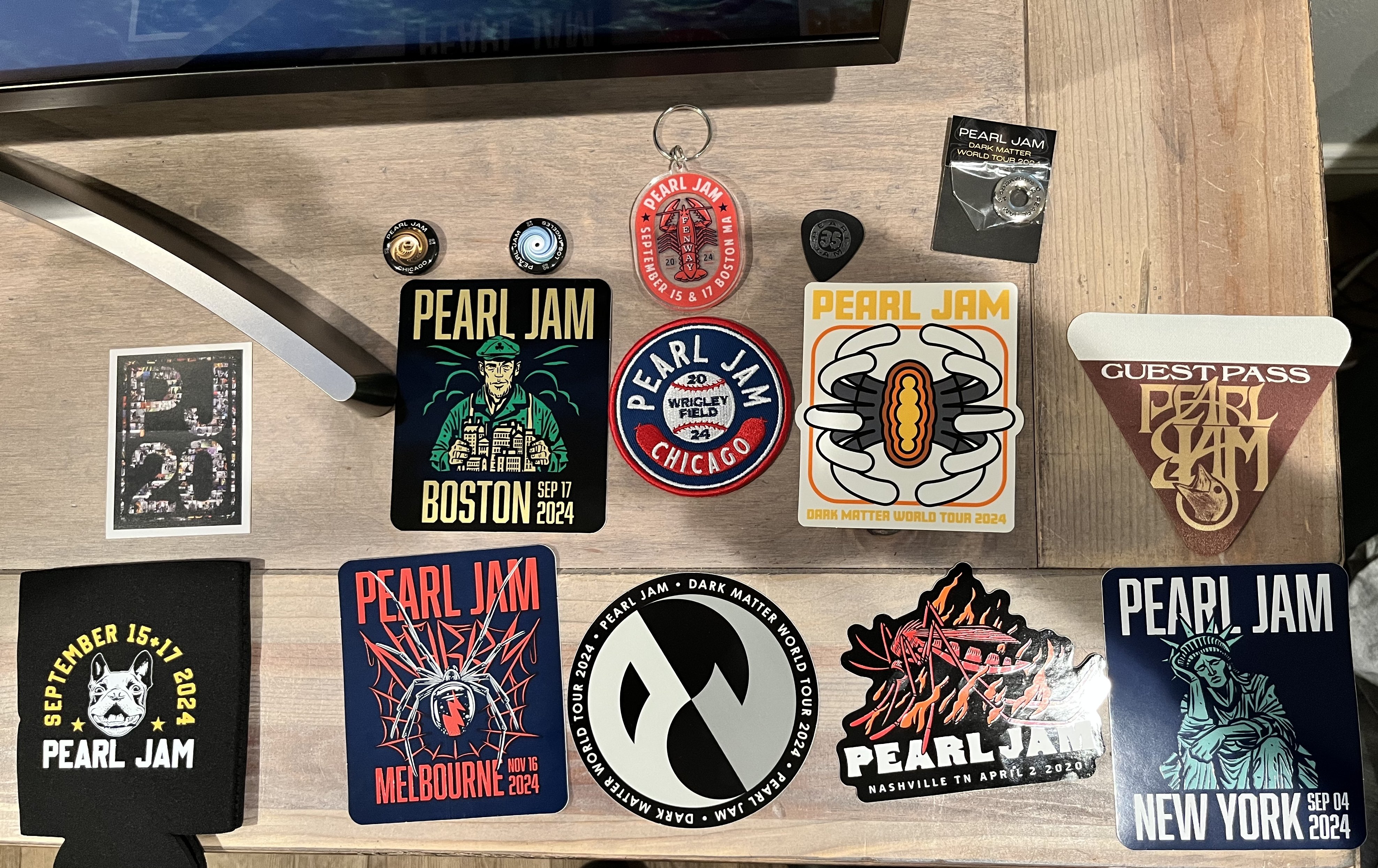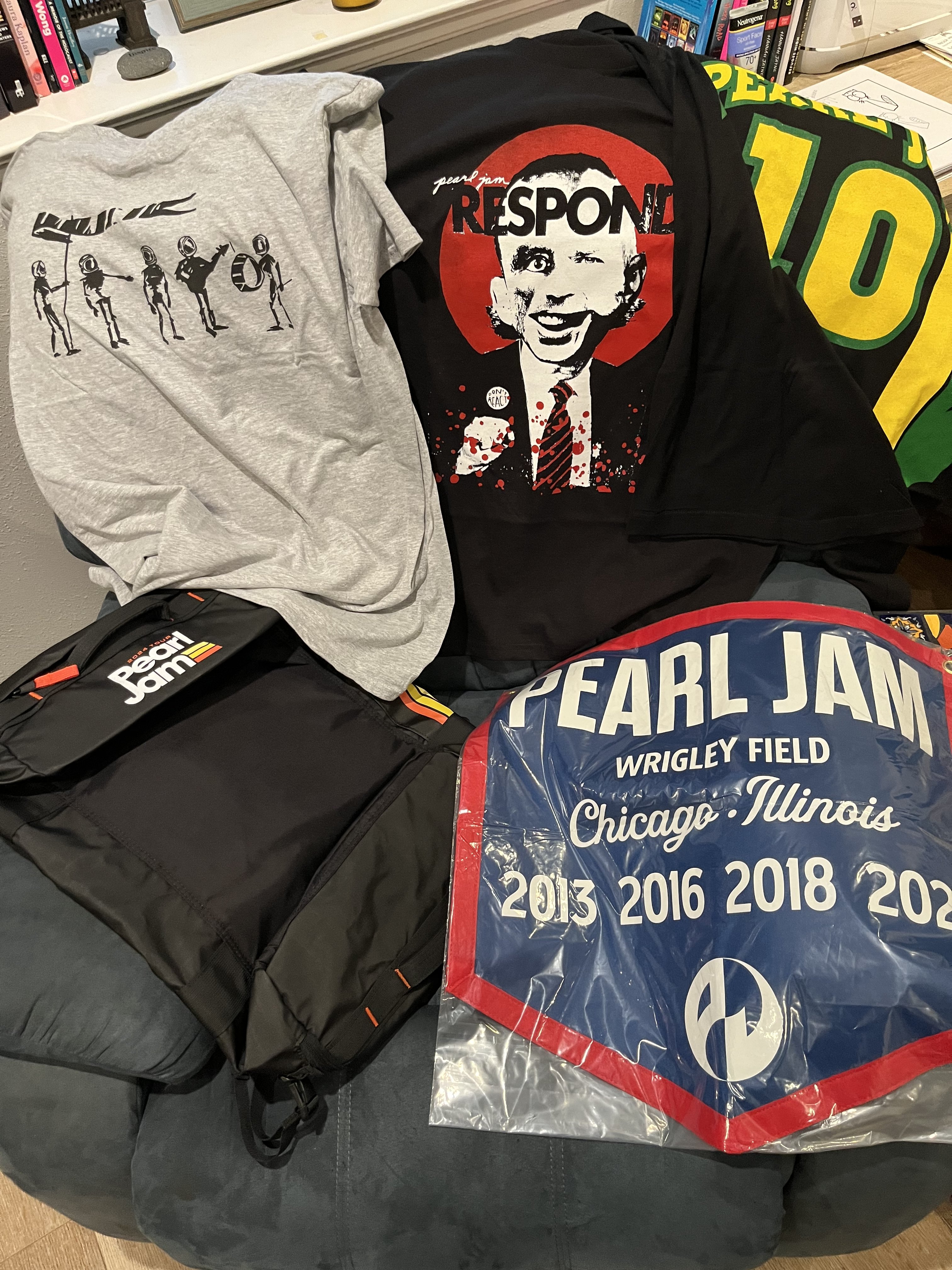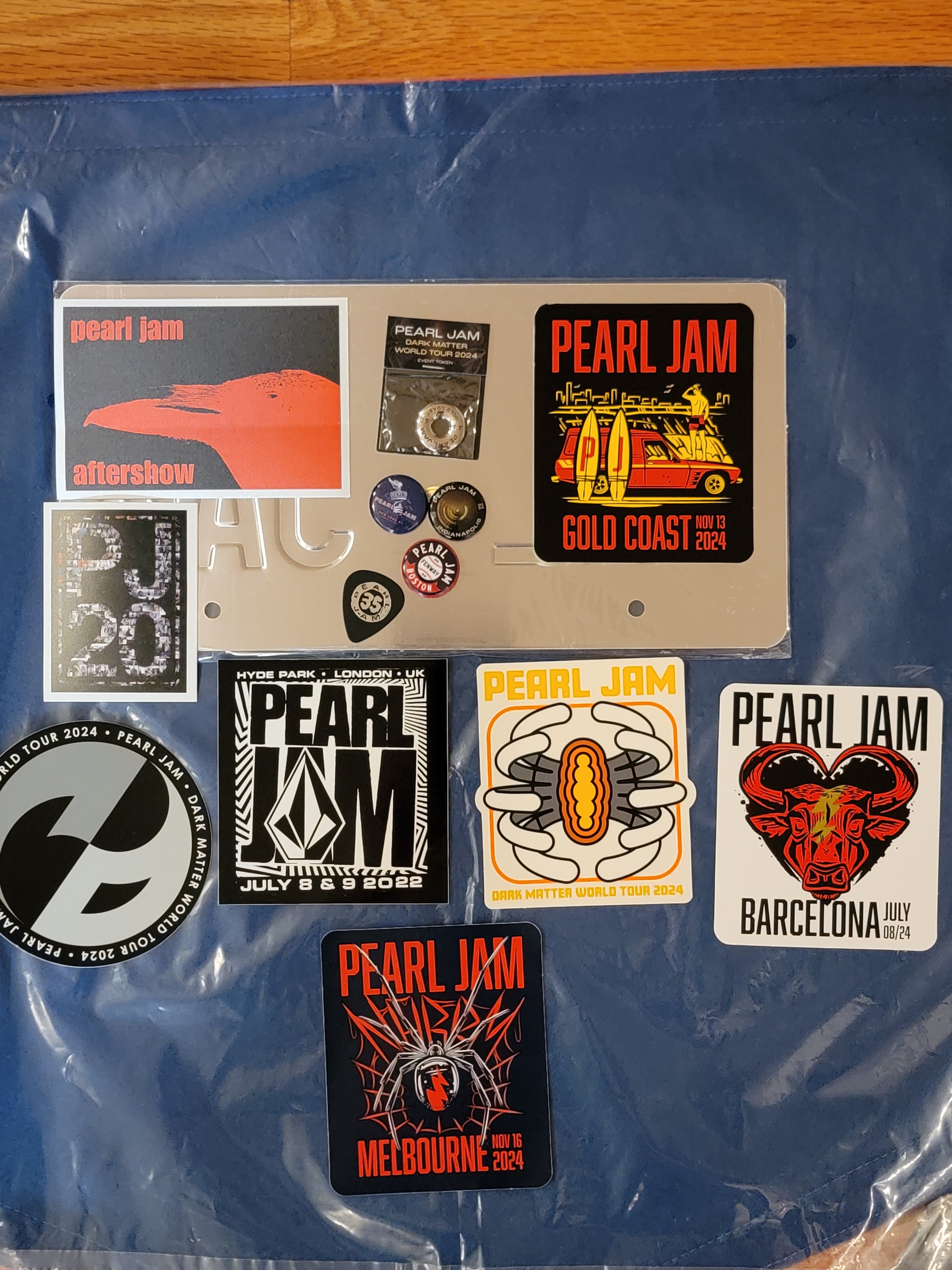 My Large bag arrived! Very happy with everything especially the spring 25 sweatshirt! Appreciate the Boston banner because I was at 2016 shows. Have a Wrigley pin but would trade pin for Nashville 2022 pin. This is my first mystery bag and so glad i finally did this. Good luck to everyone else still waiting!