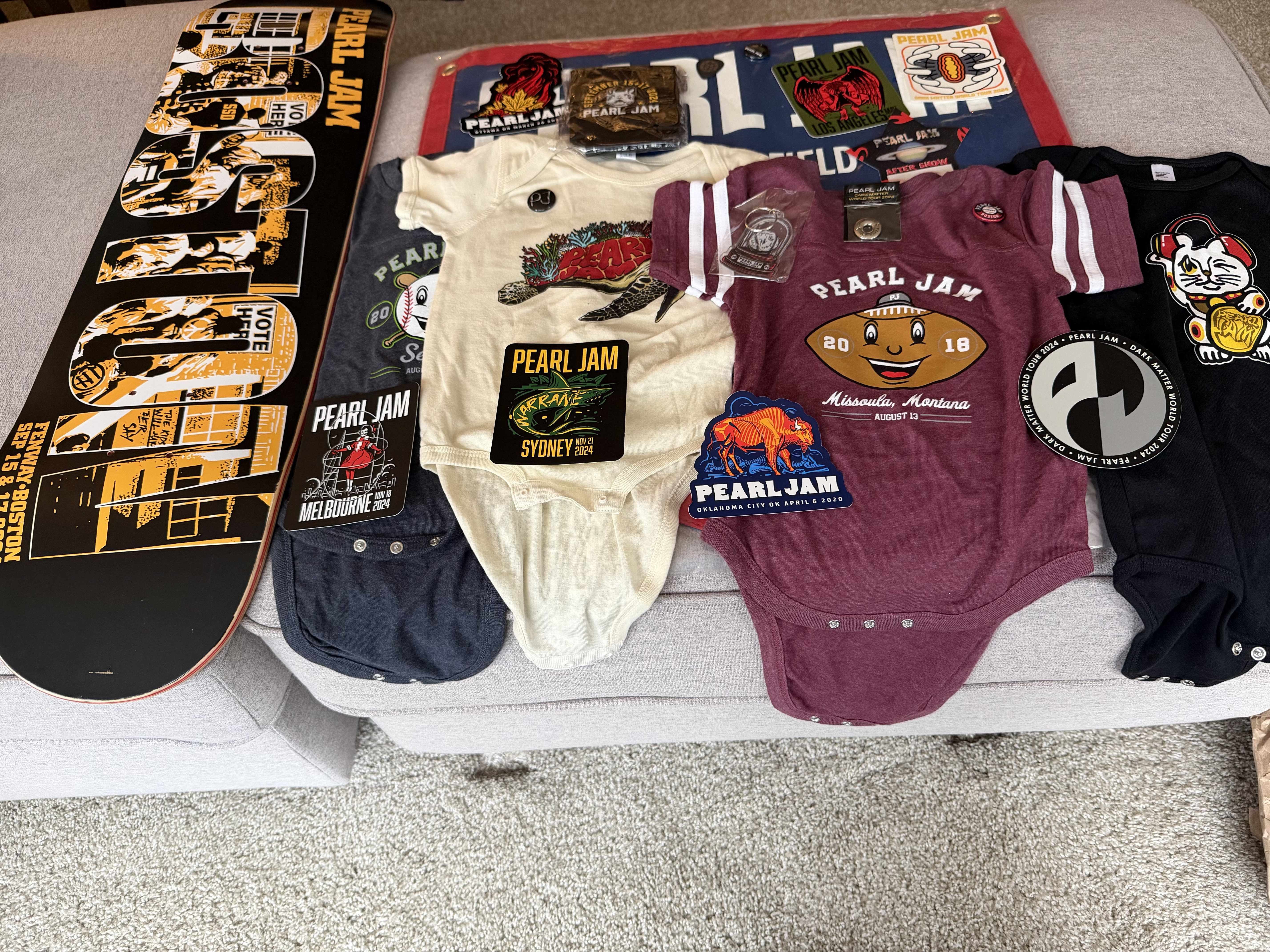 I collect all the PJ stickers and pins, so I'm happy to take any extras you don't need/want. I do a lot of sticker and pin trading :)