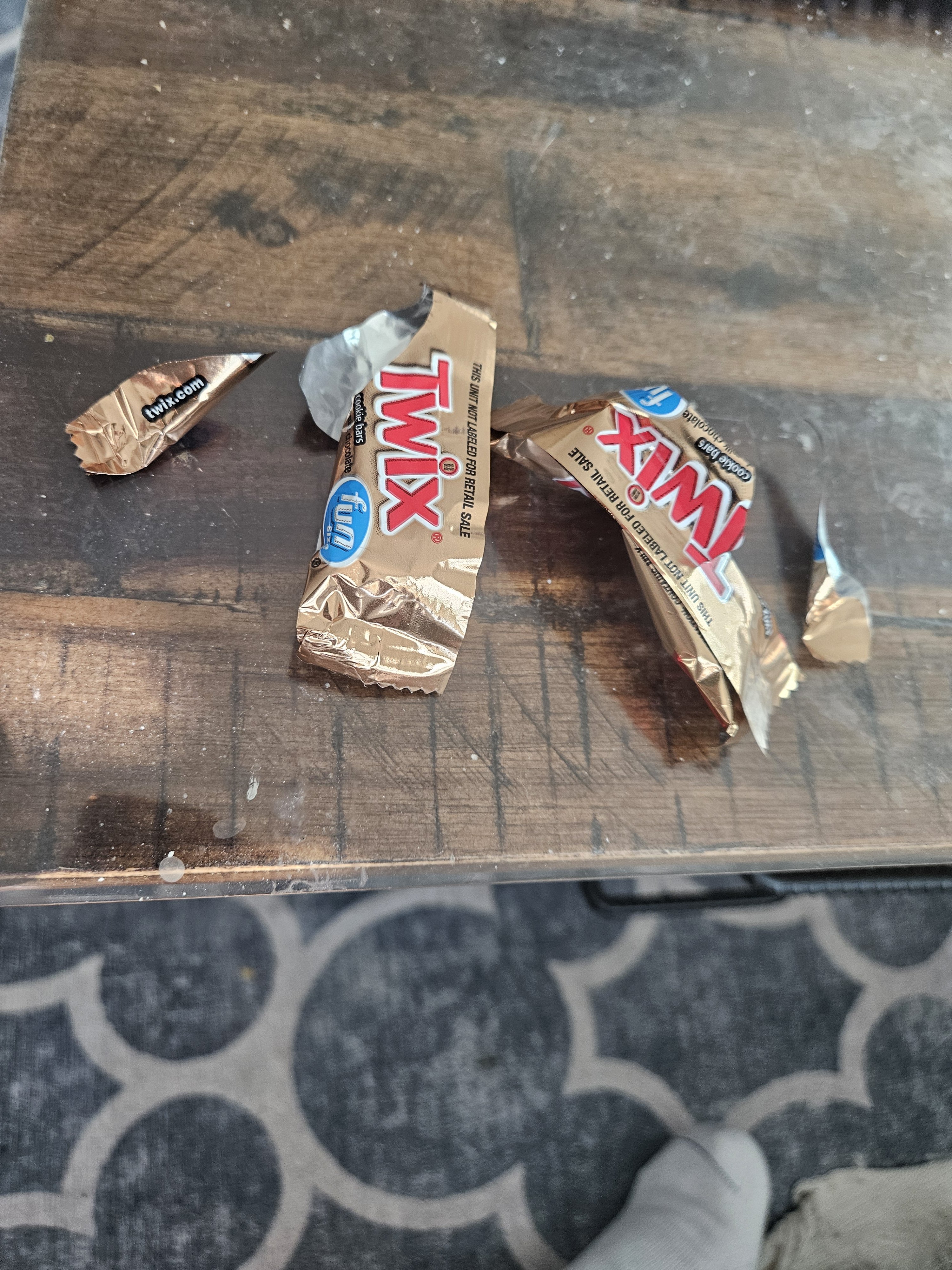 I sampled a few pieces of candy while we were passing them out at our trunk or treat. A couple of mini Kit Kats and Mini Milky Ways. Just wanted to make sure they hadn’t been poisoned 😊