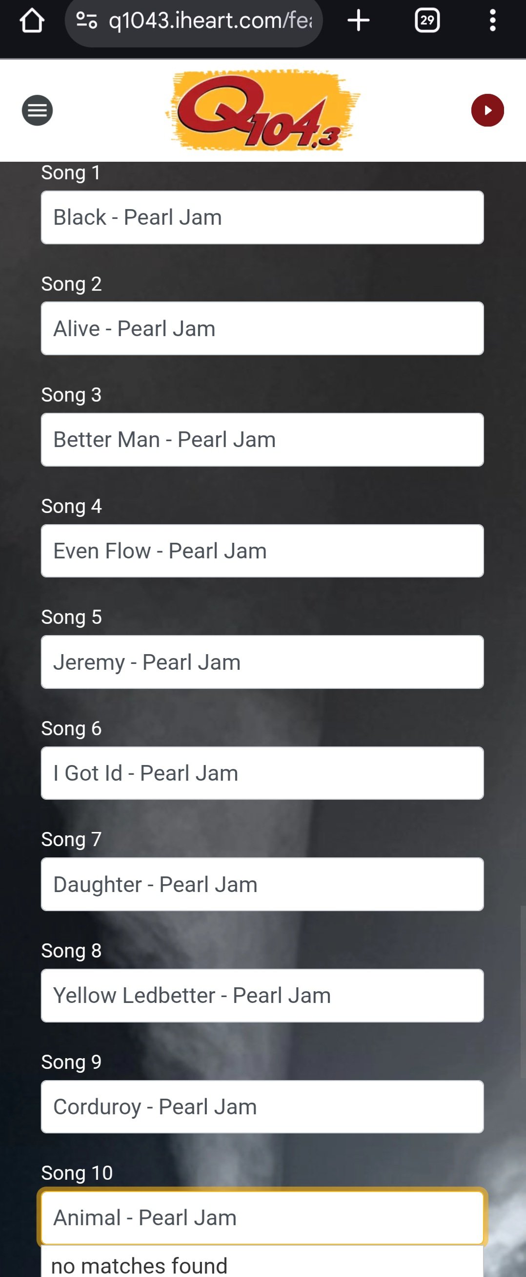 Thanksgiving Q104.3 has a countdown of the top 1043 Songs of all time voted by fans. Some years our guys are represented well others they're barely in there. These were the songs that made the list last year. Hopefully we can get one song in the top 20 this year. If you do vote keep it to these songs as the casuals will only know these songs and have a better chance to get in.