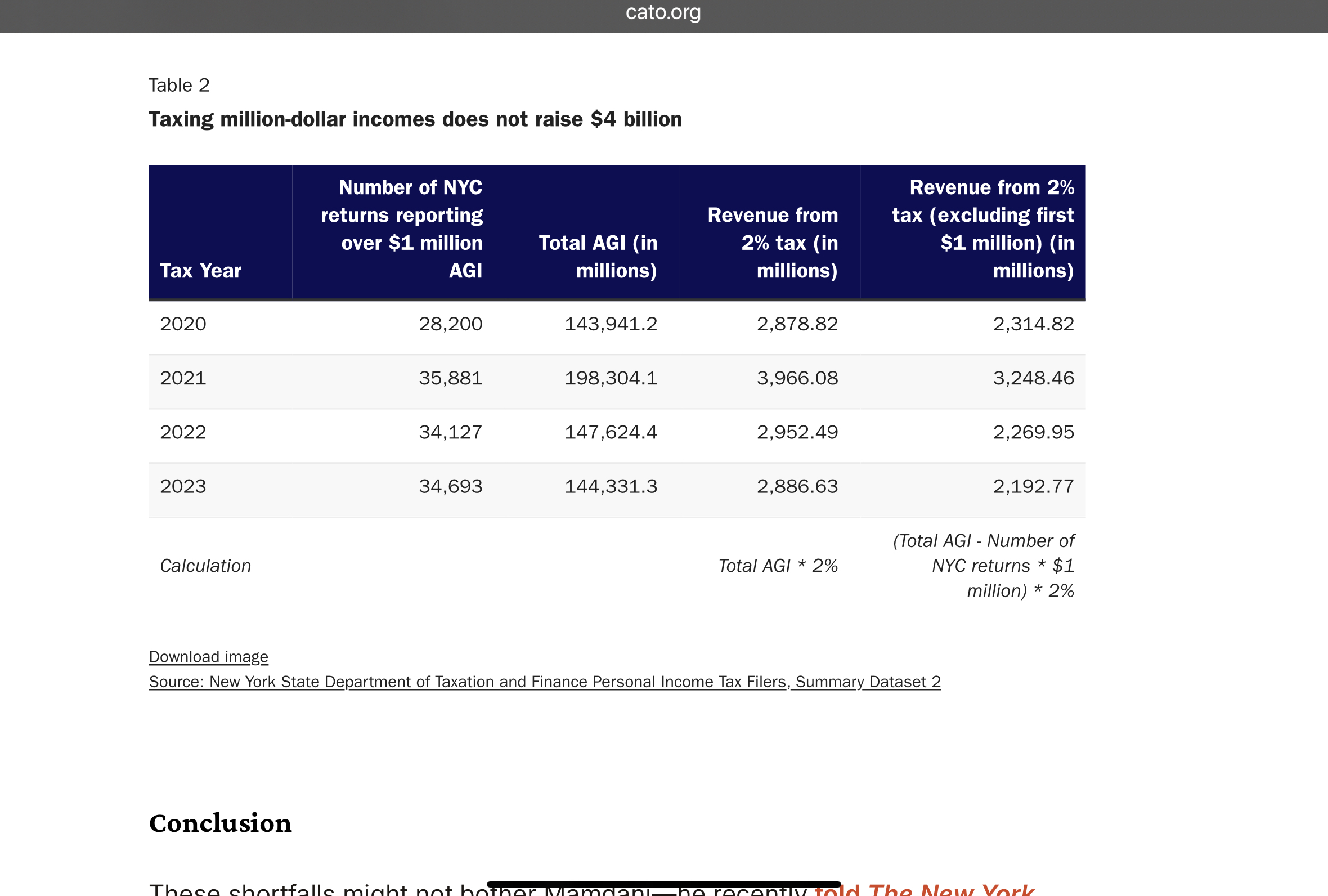 Yes, I know there is a NYT article claiming a short term trend of increases in millionaires (not income millionaires that’s applicable here), but short term trends are more defined like events such as Covid. That’s why the long term trend made an impact in my reading. Plus in the data presented, millionaires were not targeted like they are by ZM, giving folks a huge incentive to leave, which is my point, and is clear once we possibly in the future examine the very high income taxpayers that will be funding a huge part of these programs. That’s where ZMs logic starts to fail spectacularly.