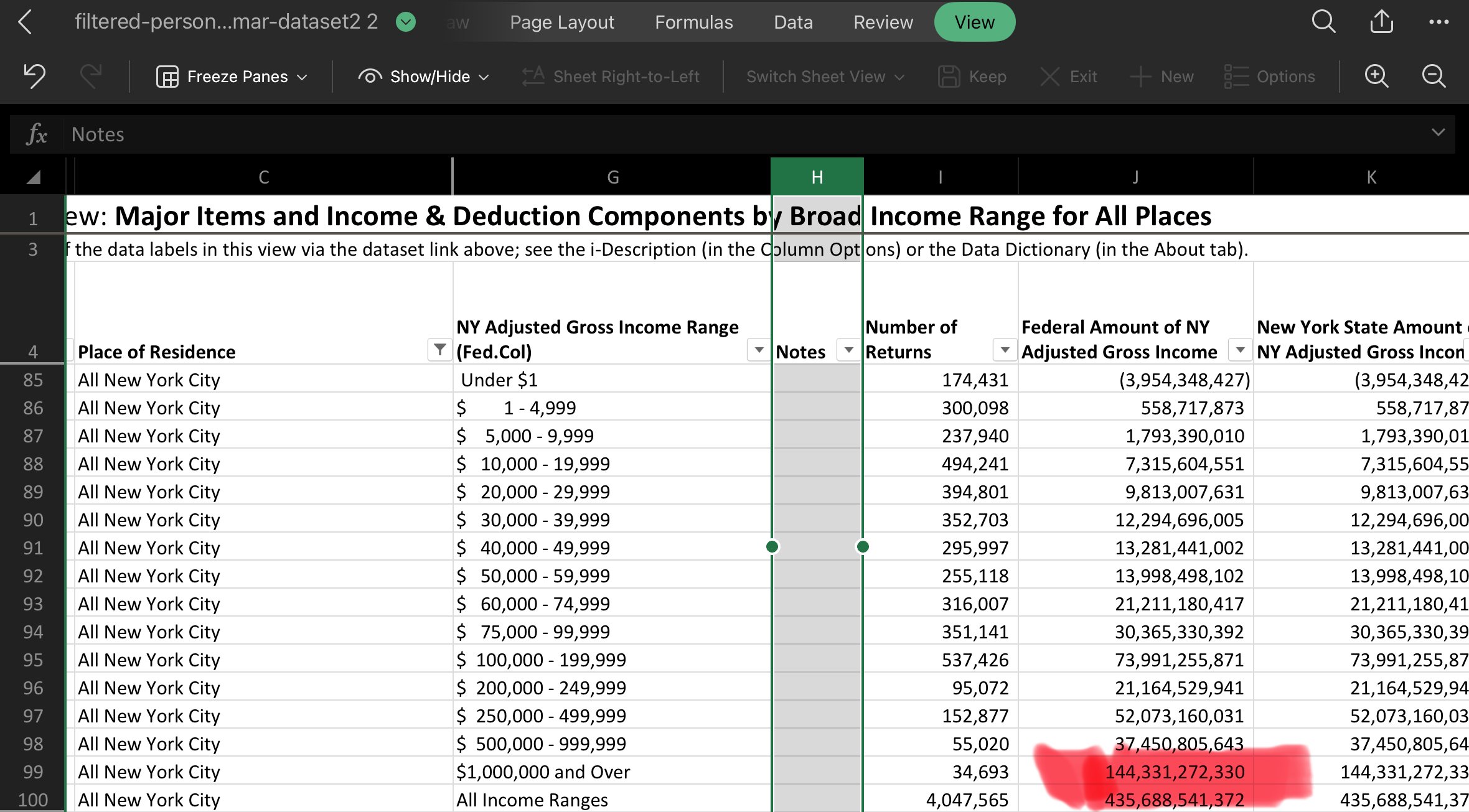 Without my abacus, it appears that you assume all 34,000 NY'ers that earn a million or more and will be taxed by raising the NYC income tax rate by 2%, earn $1M and not more, that there's not some percentage/number of NY'ers earning $2M, $5M, $10M, $20M, or $30M+ and some number in-between those amounts. 2% of $1M is $20K. Based on 2022 data, $3,045,440,000 could be raised by increasing the NYC tax rate by 2% and applying it to those earning $1M-$10M+ (33,765 individuals earning $1M+). So, I believe $4B is a realistic number given the 2022 data is 3 years old and the Bus Driver is working with newer data. 34,000 households do not an individual make, as some households probably have more than one individual that earns in that $1M-$10M+ range.