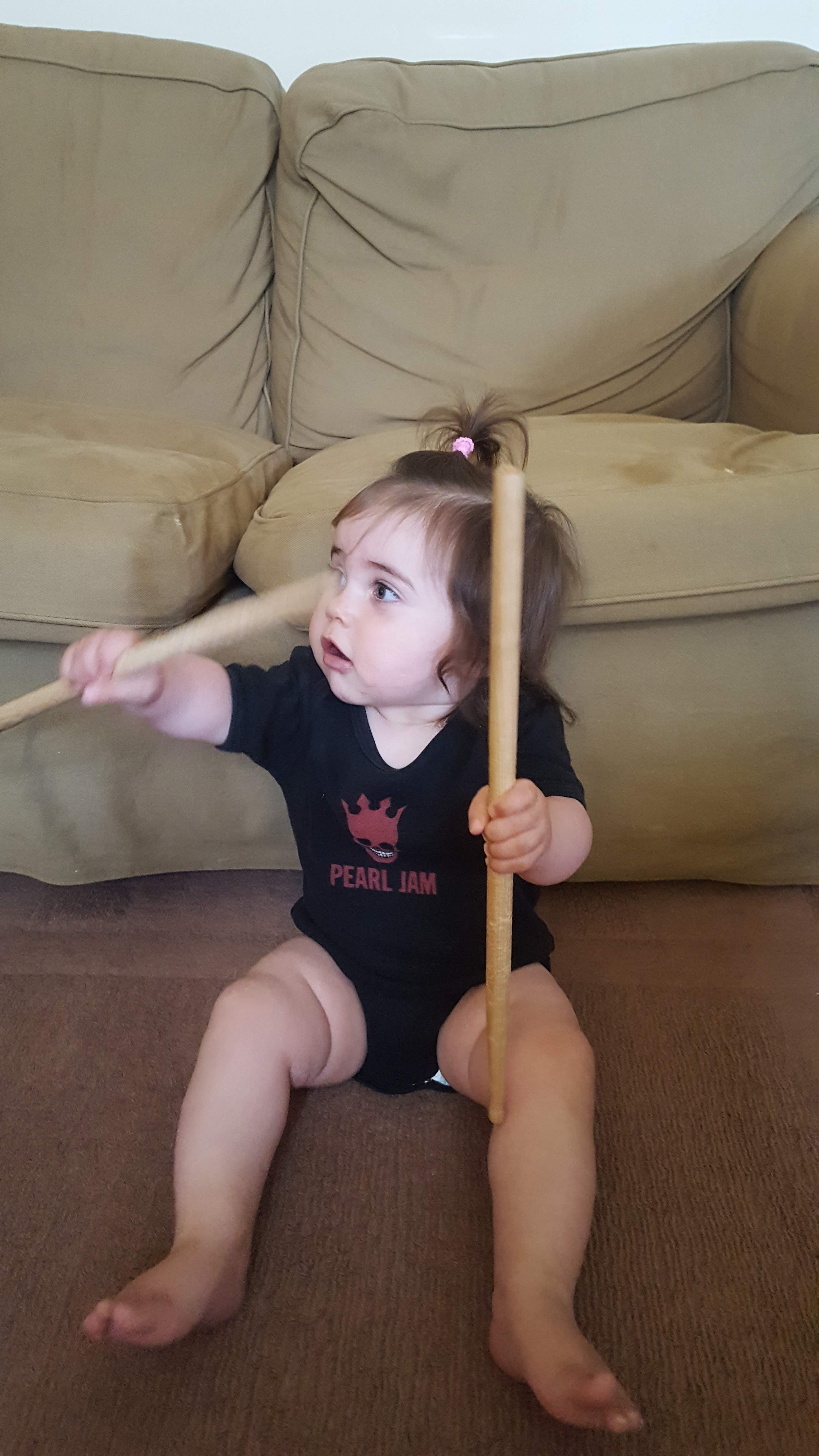 The "I Got Shit" onesie made the rounds over here. The one in the car seat is our oldest at the hotel before the Spectrum shows in 2009. The next is our second oldest in the same onesie.