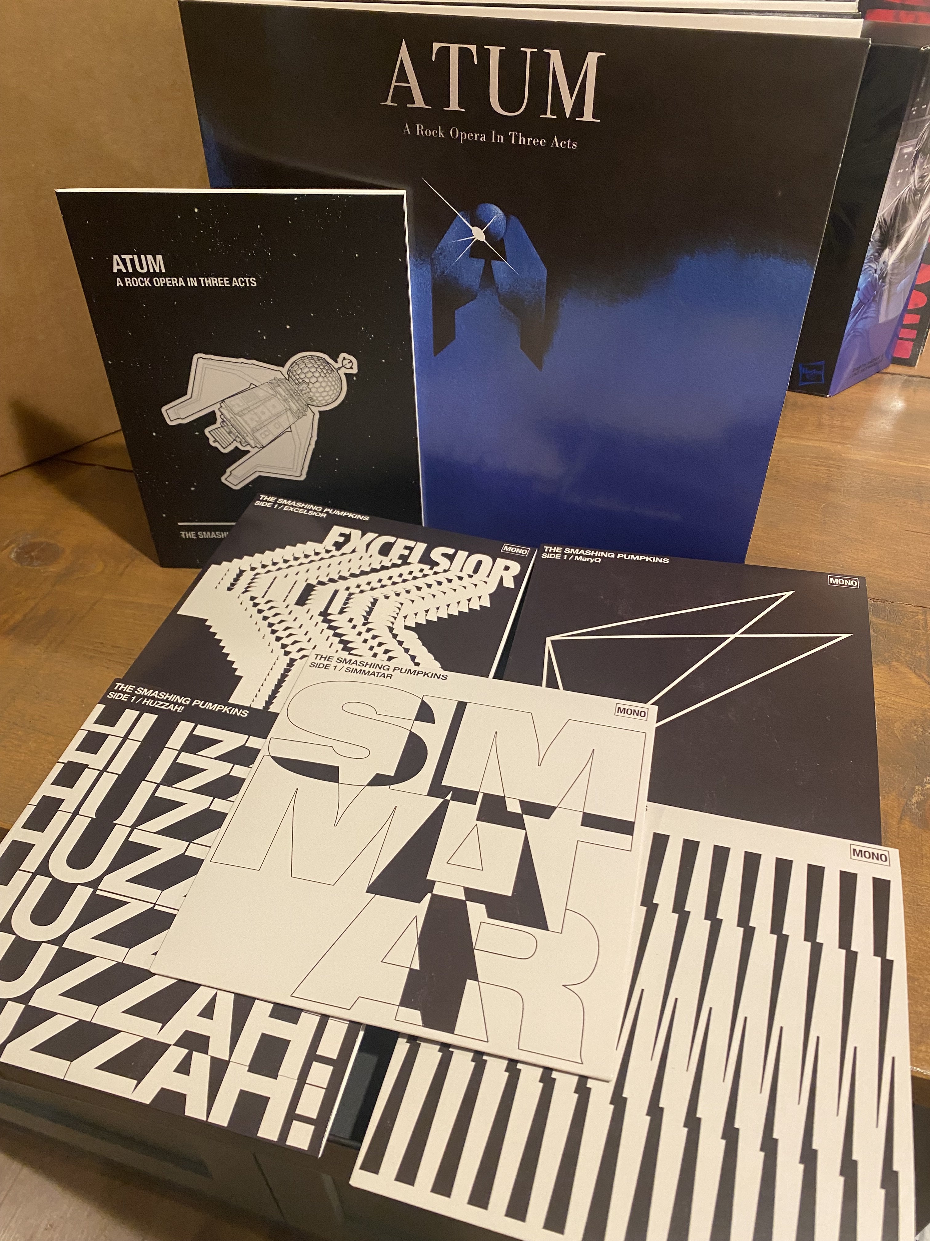 - (SOLD) The Smashing Pumpkins / ATUM : A Rock Opera In Three Acts (Box Set 4xLP 180g + 5x7" Singles / MINT) - $250 (Never played, includes Mylar foil bag and original shipping box. Small scuff on edge of the box which has it rated as NM otherwise perfect. )