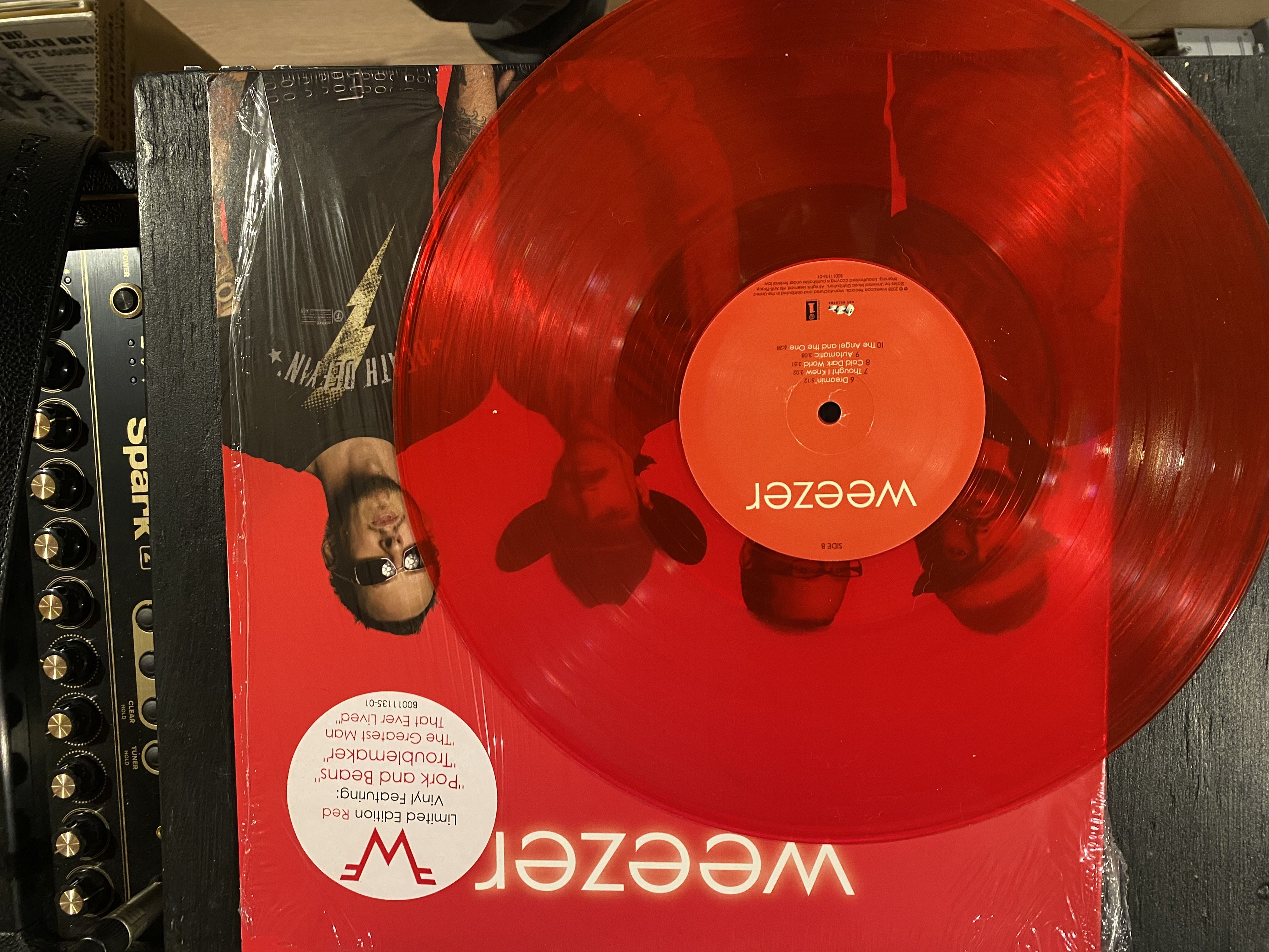 - (SOLD) Weezer / Weezer (Red) (1st Pressing on Red vinyl / NM) - $75 (Original pressing on Red vinyl. Opened, played once. Still in original shrink with hype sticker.)