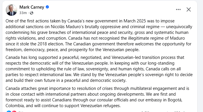 • British Prime Minister Keir Starmer said he would continue talking to US counterparts about a transition to democracy. “We regarded Maduro as an illegitimate President and we shed no tears about the end of his regime,” he wrote on X.