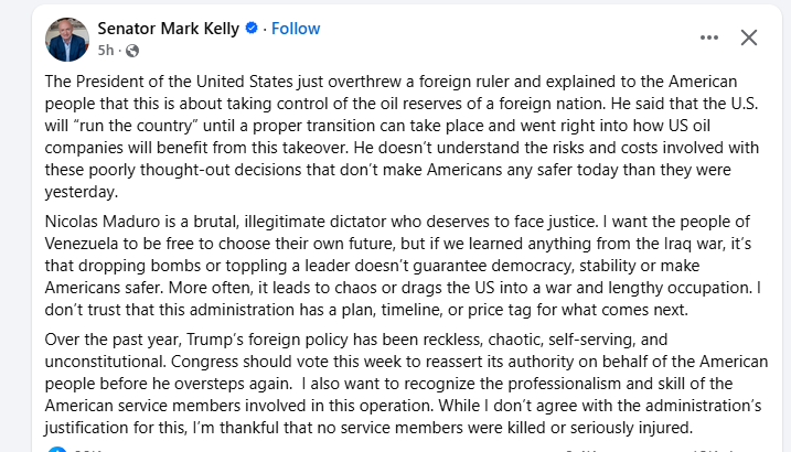 Maduro is a dictator for sure and not a good person or leader, but that doesn't mean US insertion yet again in another country because of oil. Fuck all these assholes. Only an insane voter would still somehow find ways to support this fucking corrupt piece of shit. Congress is a joke and a failure. I hope they lose 60 seats this fall. The rise before the fall. Enjoy owning the libs and playing tough guy until you get ousted or try to make the rounds pretending you didn't have enough information to challenge the power of the executive branch.