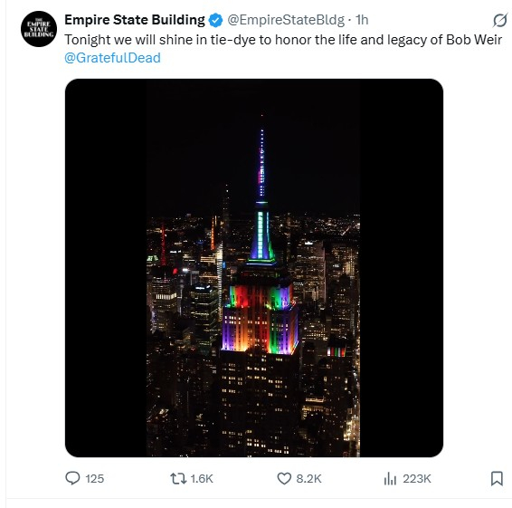It is with great sorrow that I must announce the death of Bobby Weir.