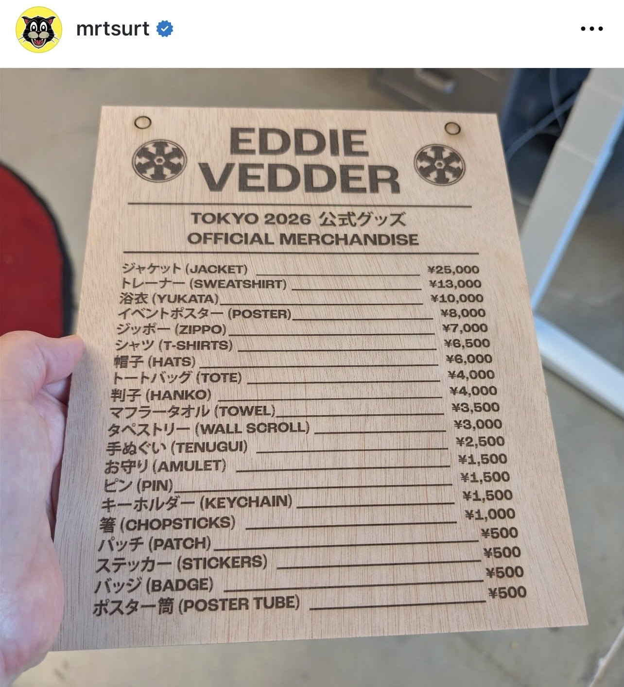 2)At this moment no info available about merchandise but I have never seen a show of major artists like Eddie without merch stand at the venue. Although not clear if posters will be sold, I will bring my tube! And CDs and vinyls are usually sold at the venue and often they offer small gifts like pins for purchasing.Thank you very much!Where can I get a poster tube in Osaka? Daiso?"Your light's reflected now, reflected from afar. We were but stones, your light made us stars."0 -