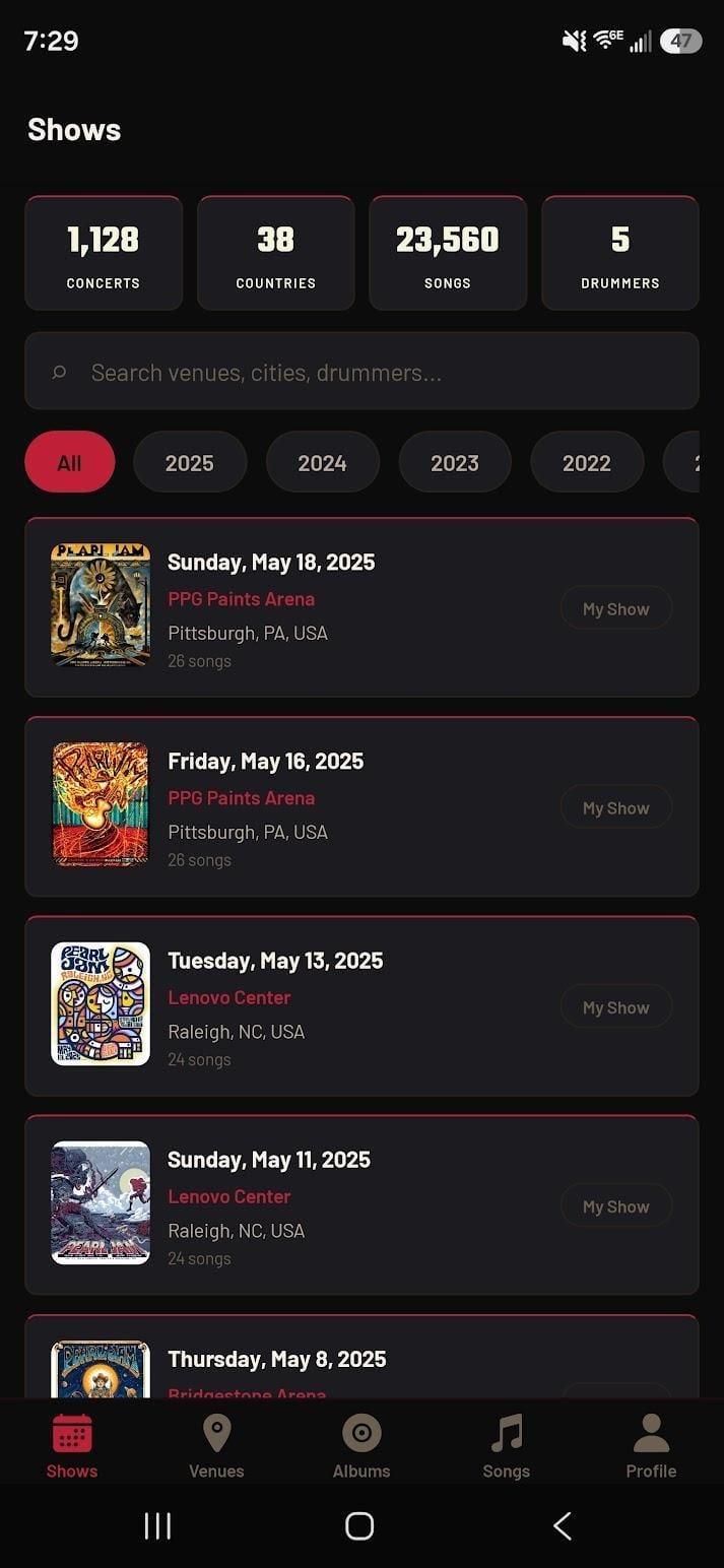 I built a Pearl Jam companion app and I'm finally ready to share it!