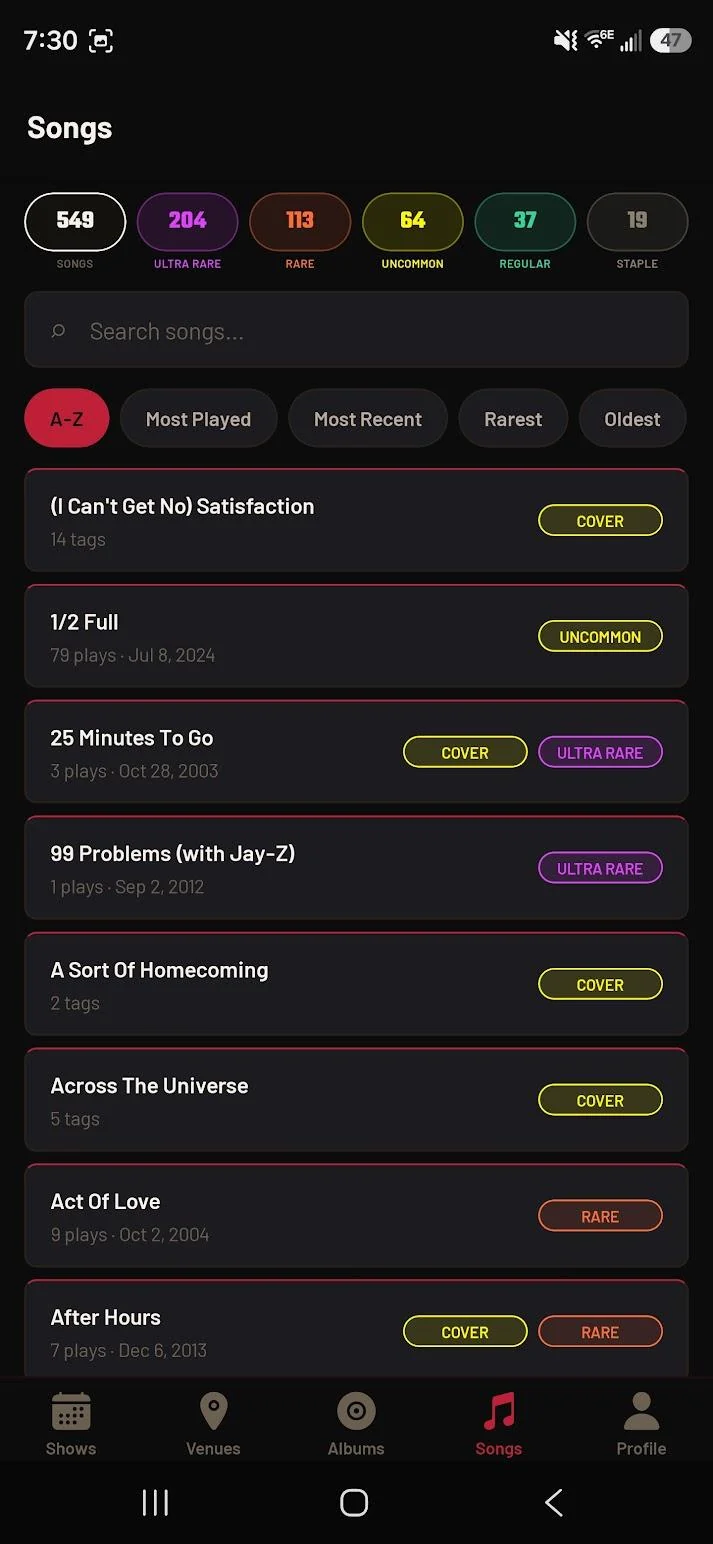 🧠 Fun insights like most played songs, tour trends, rarity scores, etc.