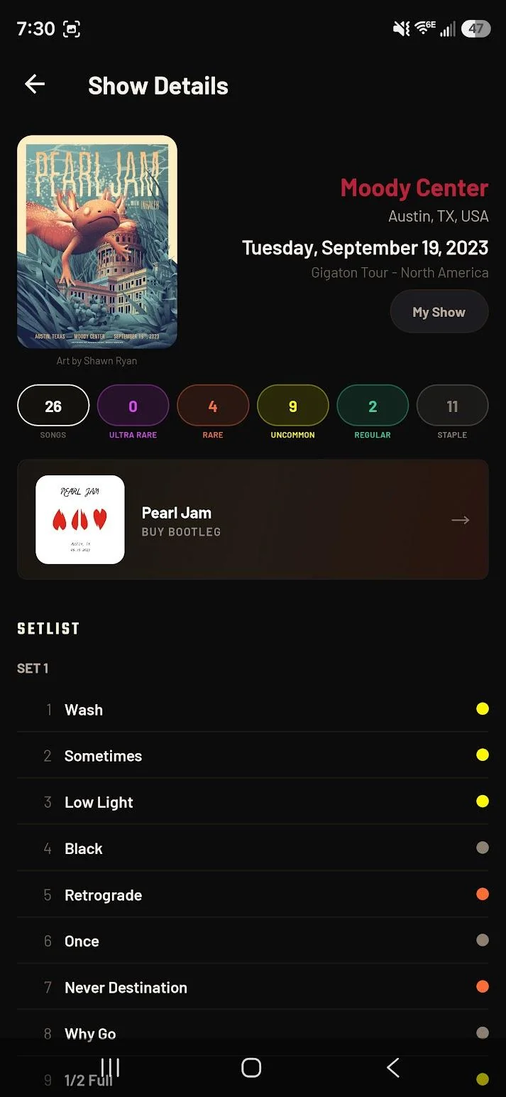 🎸 Track every Pearl Jam show you've attended