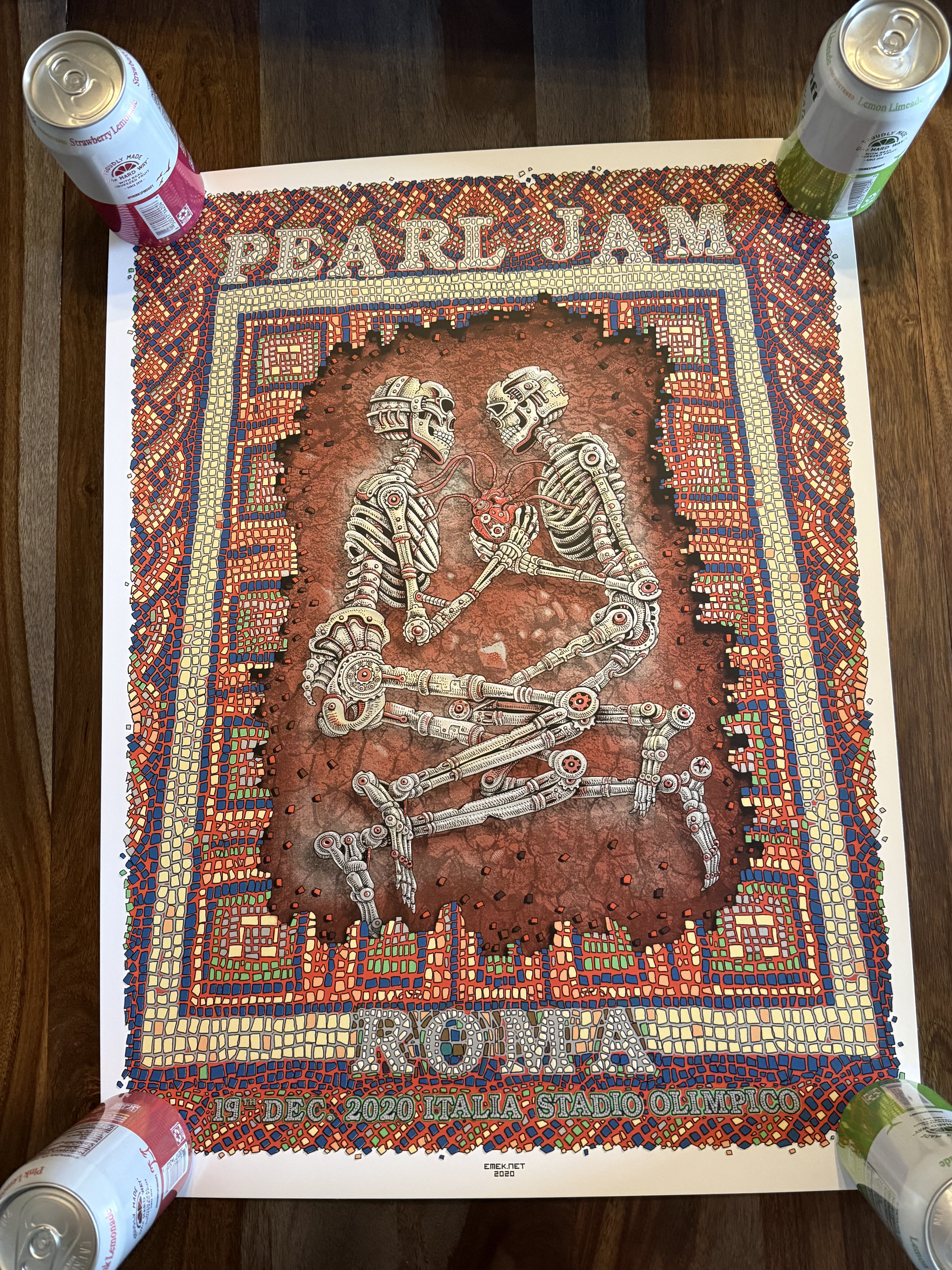 I love being reminded there are still good people in this world--great story.thebuilder said:Yup streaming version. However, I was at the show and have an AP from emek… there was a big kerfuffle at the show some gates opened early to let people buy posters and some didn’t.. when all was said and done all the posters were sold before gates opened (for the most part) and there was no limit so people walked out with stacks. It was a bummer but we had a show to see.. then our 10c seats were obstructed.. after we flagged down a very kind usher, they got their very kind manager and offered to get us different seats, then I asked if we could just go into general admission and she was shocked.. but said sure it made her job easy.. then we were in the pit and ran into a woman from Aspen that we knew(we’re from Colorado 45 min from Aspen)… small world type shit.. anyways the show was great .. shooting star and all.. anyways long walk back to the apartment just to pack and leave right at dawn to go home.. no poster in hand.. the poster that would make the trip complete because we went to Pompeii and saw the casts of the people that perished including the eternal embrace.. and the mosaic tiling of their homes.. that poster would have really tied that trip together… we’re on the flight and I get a msg that emek is doing his artist sale of the poster.. and it’s scheduled for literally the exact time we’re scheduled to land… I get on his site and due to the nonsense of deplaning I couldn’t get one… so I’m not ashamed of begging.. I emailed emek… told this exact story… got an email back 5 minutes later from his wife… saying they had one held for me… serendipitous… so kind… a trip of extraordinary proportions ended with the most kind actions. So, not mad at the streaming poster…. A nice variant for the collection.Thanks for coming to my ted talk.