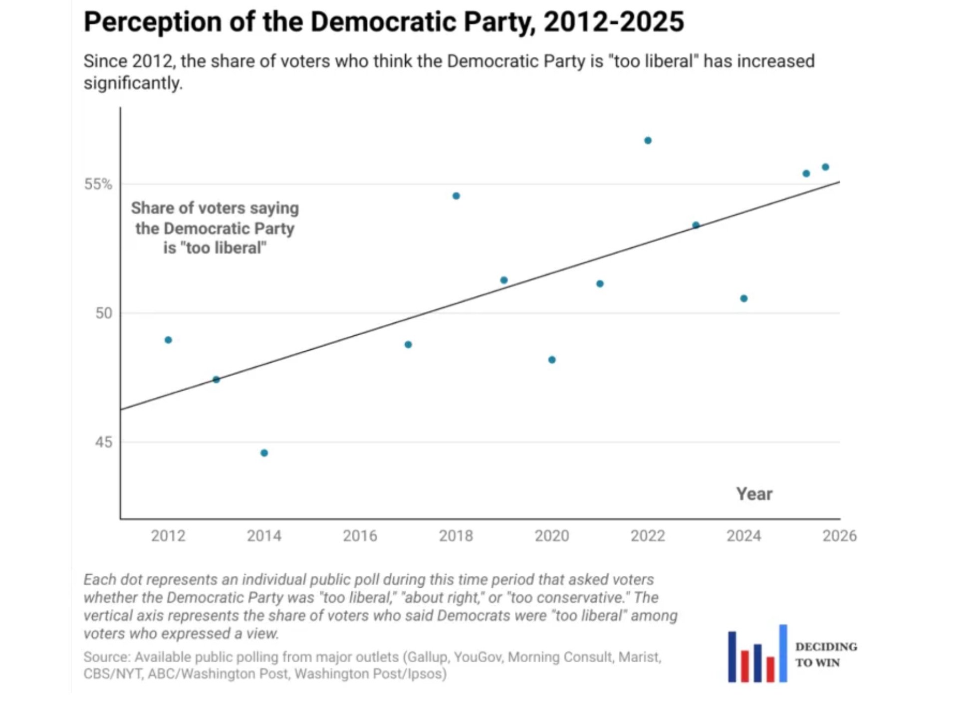 ” Give me the short version of your story: How did Democrats end up in their present state?Since Barack Obama won reelection in 2012, the Democratic Party has undergone two really major shifts. First, we have shifted our priorities, focusing less on kitchen table economic issues and more on issues that are less concrete and more abstract to voters: climate change, democracy, abortion, and other identity and cultural issues.Meanwhile, the Democratic Party became a lot more left-wing than it used to be across the board. In 2013, 24 percent of Democrats in Congress co-sponsored Medicare-for-all. In 2023, that was 47 percent. In 2013, 41 percent of Democrats in Congress co-sponsored an assault weapons ban. Now, it’s 88 percent. Only 1 percent co-sponsored a reparations study bill in 2013. Now, that’s a majority. And I think these two shifts are primarily responsible for the situation that Democrats are in today.I think many progressives would say that your theory of the case was already tried and found wanting. Kamala Harris ran to the center in 2024, advertising herself as a border hawk and tough prosecutor. She campaigned with Liz Cheney and eschewed bold progressive promises. And she lost. Meanwhile, in 2020, Joe Biden actually ran on the most progressive platform in the party’s history and won.I think both Biden in 2020 and Kamala Harris in 2024 show us that voters are evaluating candidates in large part on their record over a period of several years, not just in the three months before the election.Kamala Harris was a senator between 2016 and 2020. I believe she was the second-most left-wing senator in the country, based on her voting record. When she ran for president, she endorsed a whole slew of left-wing policies, from banning fracking to banning plastic straws. Then, she became vice president for a president that the overwhelming majority of Americans thought was too liberal. And then, she refused to distance herself from any of that president’s actual policy positions. And when she moved away from some of her own older stances, she did it quietly and never articulated an explanation for why she thought those old ideas were bad.I don’t think that Kamala Harris’s efforts to moderate hurt her electorally. We saw, during her short-lived campaign, that her approval rating went up a lot from the beginning to the end. So, I think it’s sort of hard to argue that her efforts to moderate were the reason she lost. But, at the same time, I think it really just shows that you can’t expect to talk a big game on border policy in the three months before the election if your actual border policy when you’re in office allows millions of unauthorized immigrants to come into the country.And then, with Biden in 2020, he was coasting off of his longstanding reputation of being a moderate Democrat and being to the right of other Democrats. When he actually took office, he governed as progressive; progressives acknowledged this at the time. And then, during his administration, the data shows that the share of voters who thought that Joe Biden was too liberal increased dramatically. And so, I think it’s just a good example of, again, your substantive positions really matter for how voters perceive you. 0 0