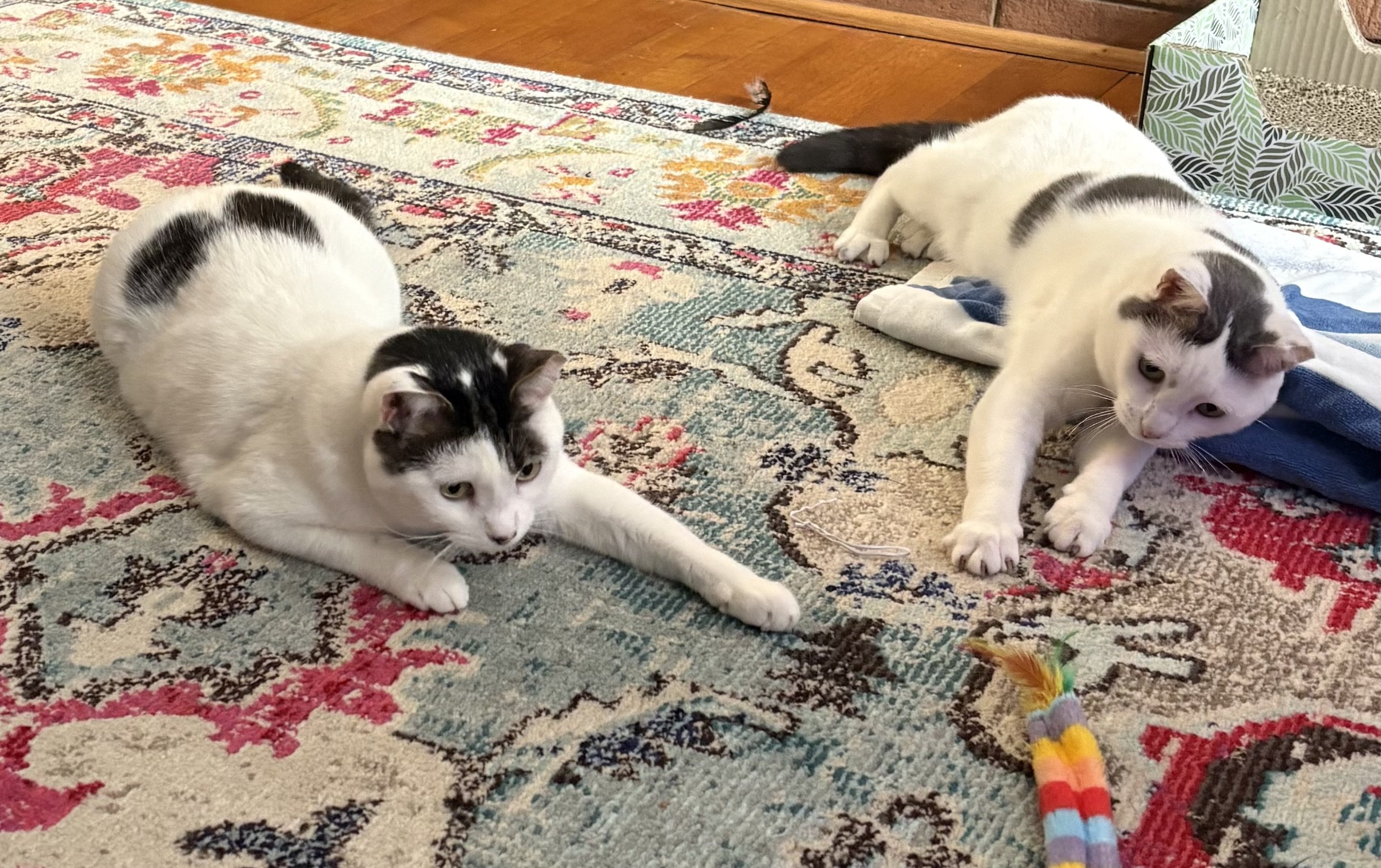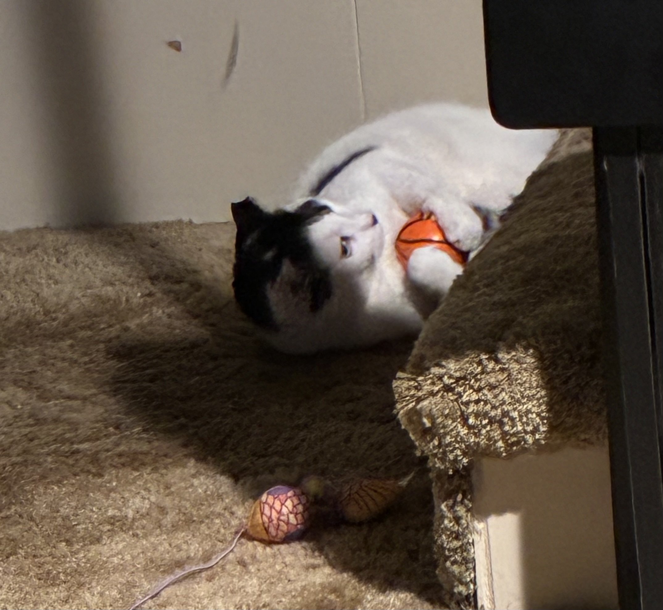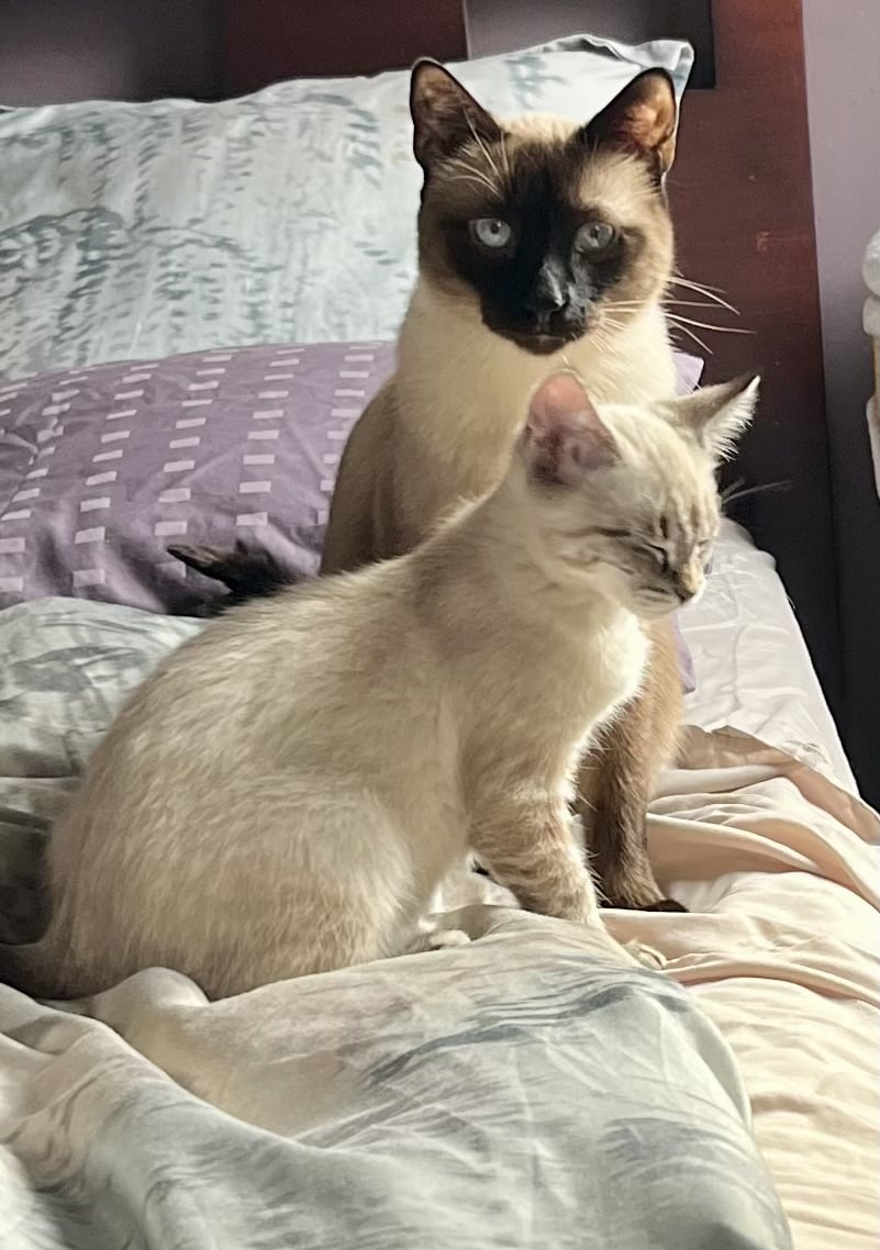 I love seeing all your cats! I don’t post often but get excited every time I see this thread updated. Please keep ‘em coming!We had to say goodbye to our last cat Maggie in September. We brought her in as an energetic elderly lady, wanted to give her a home for her golden years, and sadly we came to find out she had aggressive cancer. A couple months ago we adopted a pair of siblings, who hid in the basement for a couple weeks. We’ve named them recently: Poe and Freya. Their mother was a stray, they spent a year in cages then a year is foster, where they sat alone in a room for another year (the foster mom separated them from all her other animals). They are slowly coming around - I got to pet Poe for the first time Wednesday! - but I don’t expect them to be carefree lap cats for some time. They’re definitely loved though.0 -