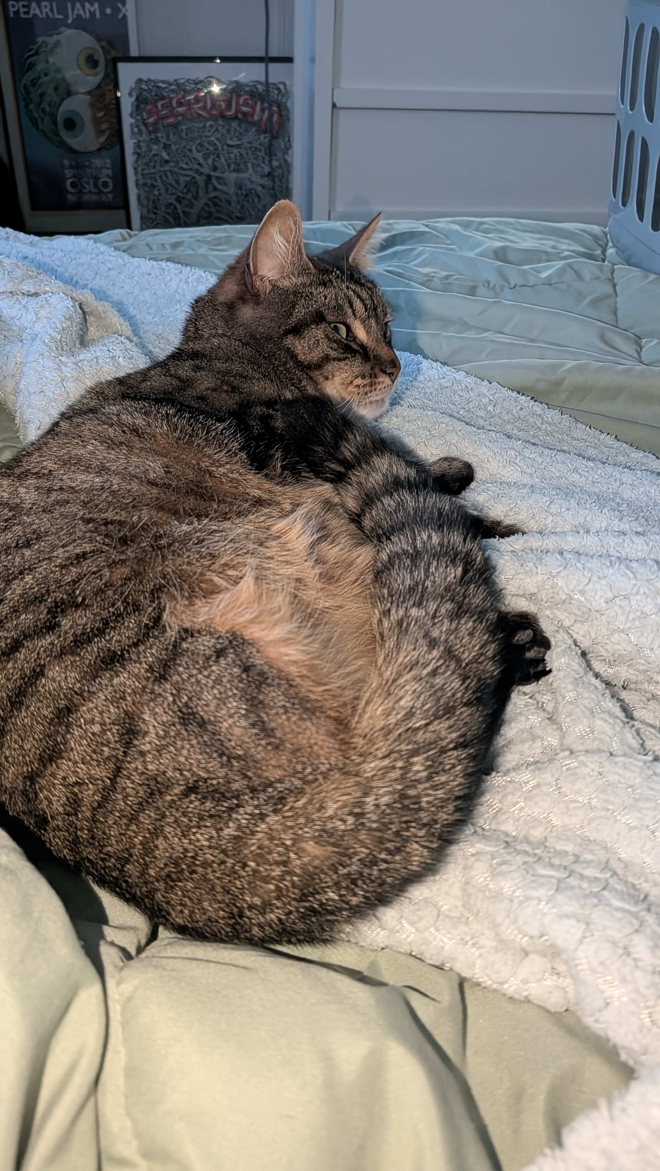 first cat I had that would "sploot"....we would always joke that a storm was coming from whatever direction he was facing when he'd do that. Like he was warning us or something.