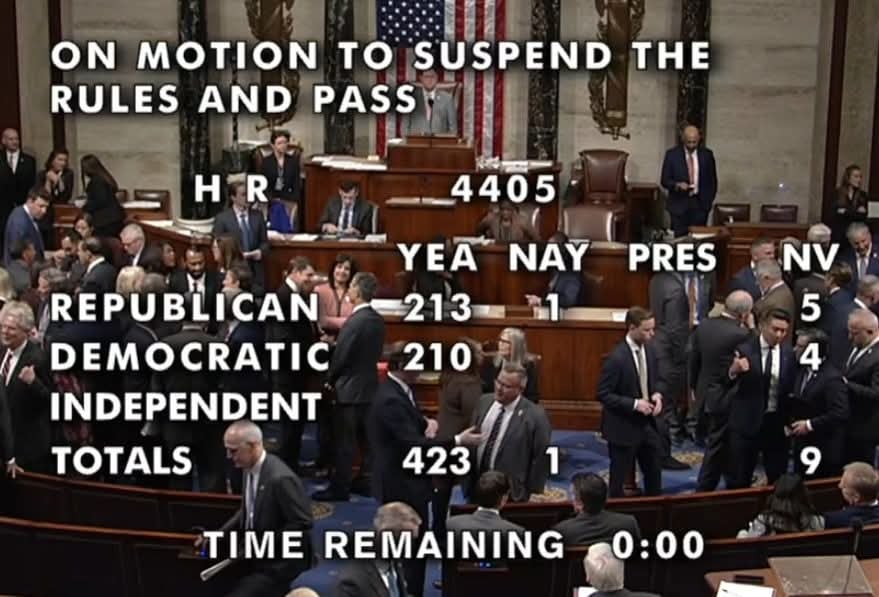 Per The Hill, “The vote was a lopsided 427-1, with Rep. Clay Higgins (R-La.) casting the lone ‘no’ vote. ”0