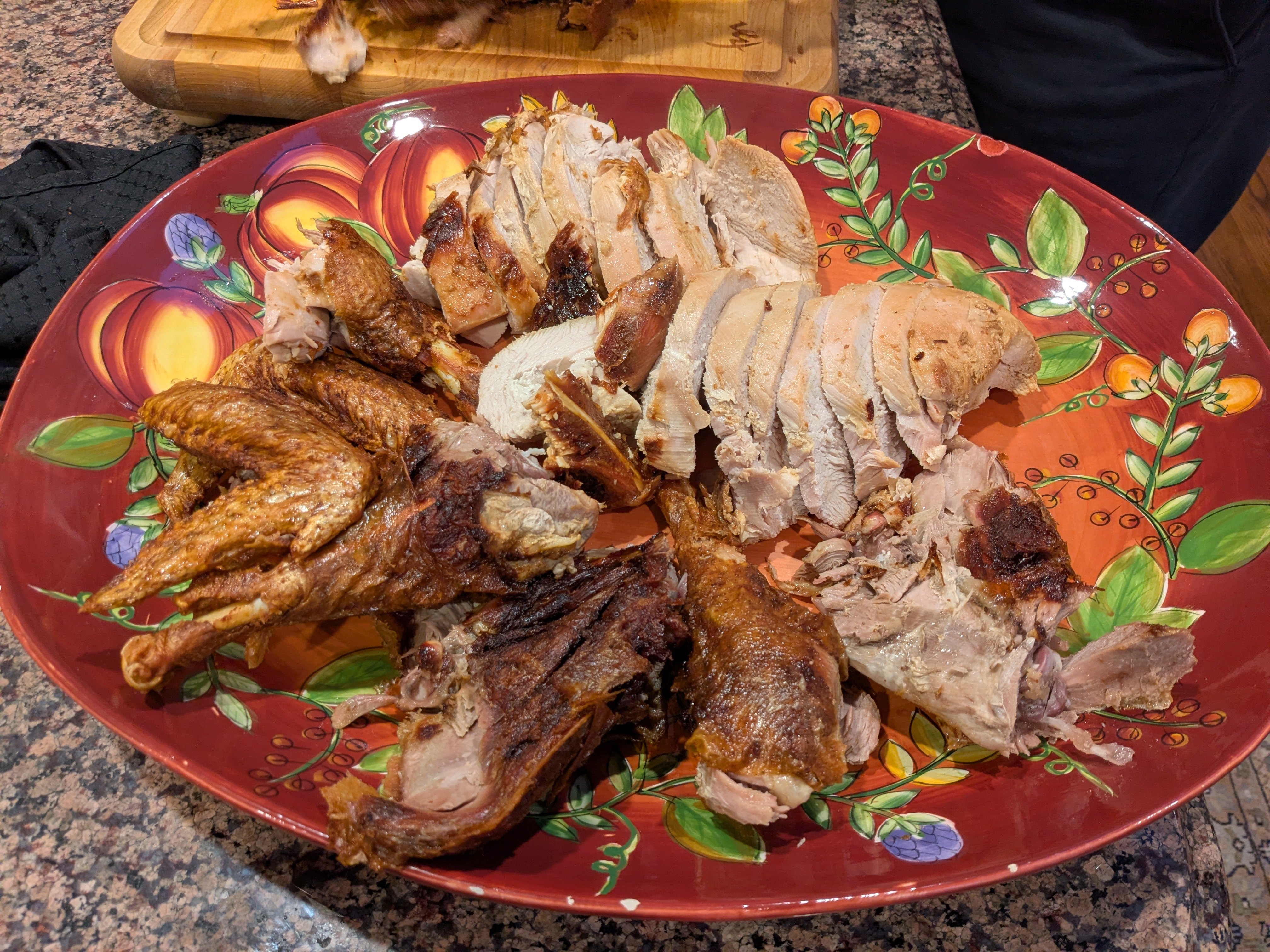 It came out good, but not mind blowing. I may have left it a few minutes too long but I was going on breast temp, and wasn't ready to pull it until it hit 160.