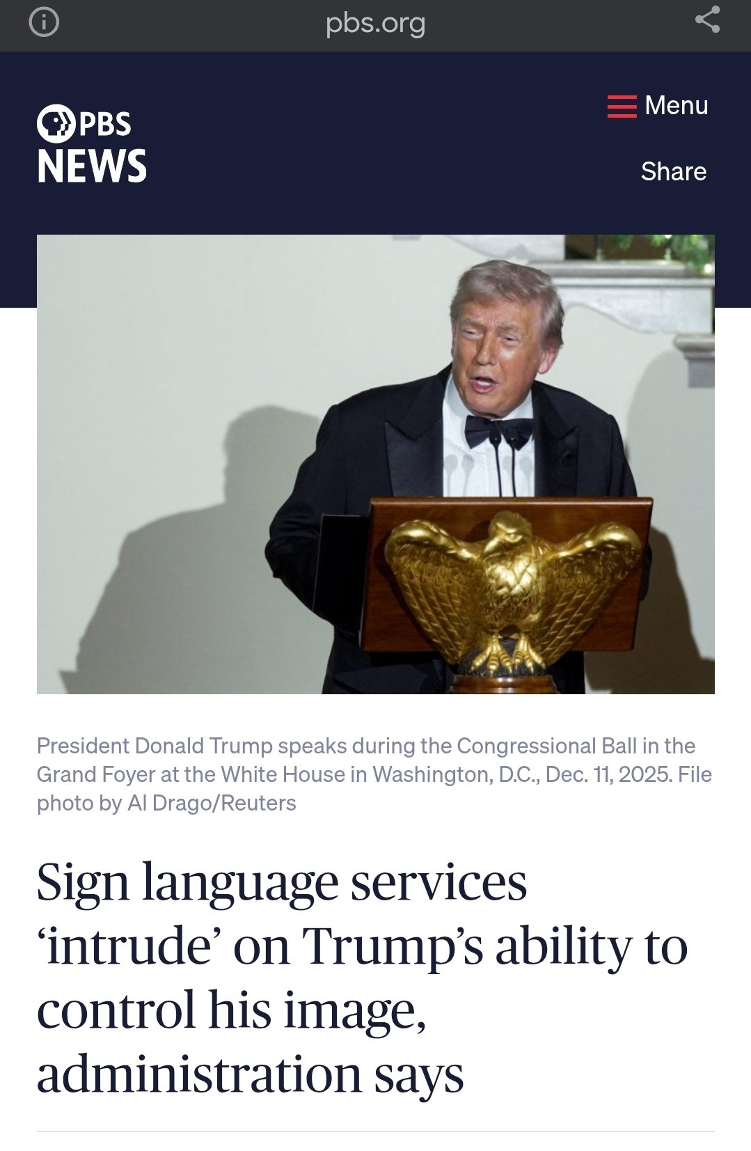 https://www.pbs.org/newshour/politics/sign-language-services-intrude-on-trumps-ability-to-control-his-image-administration-says